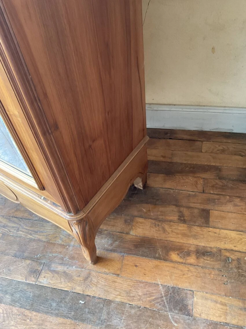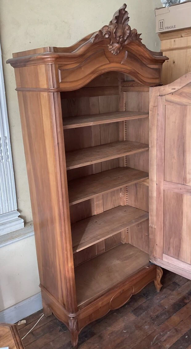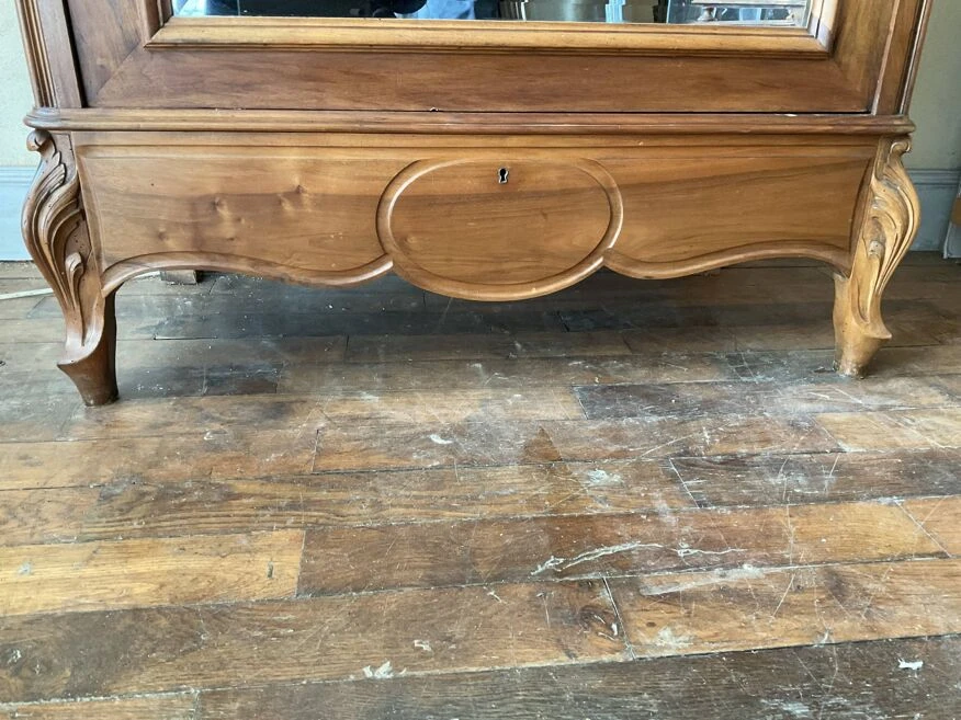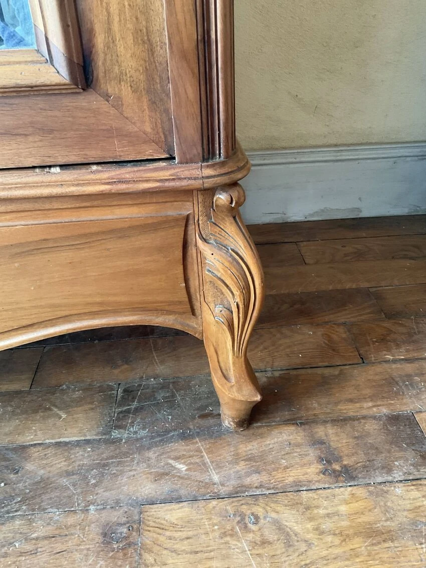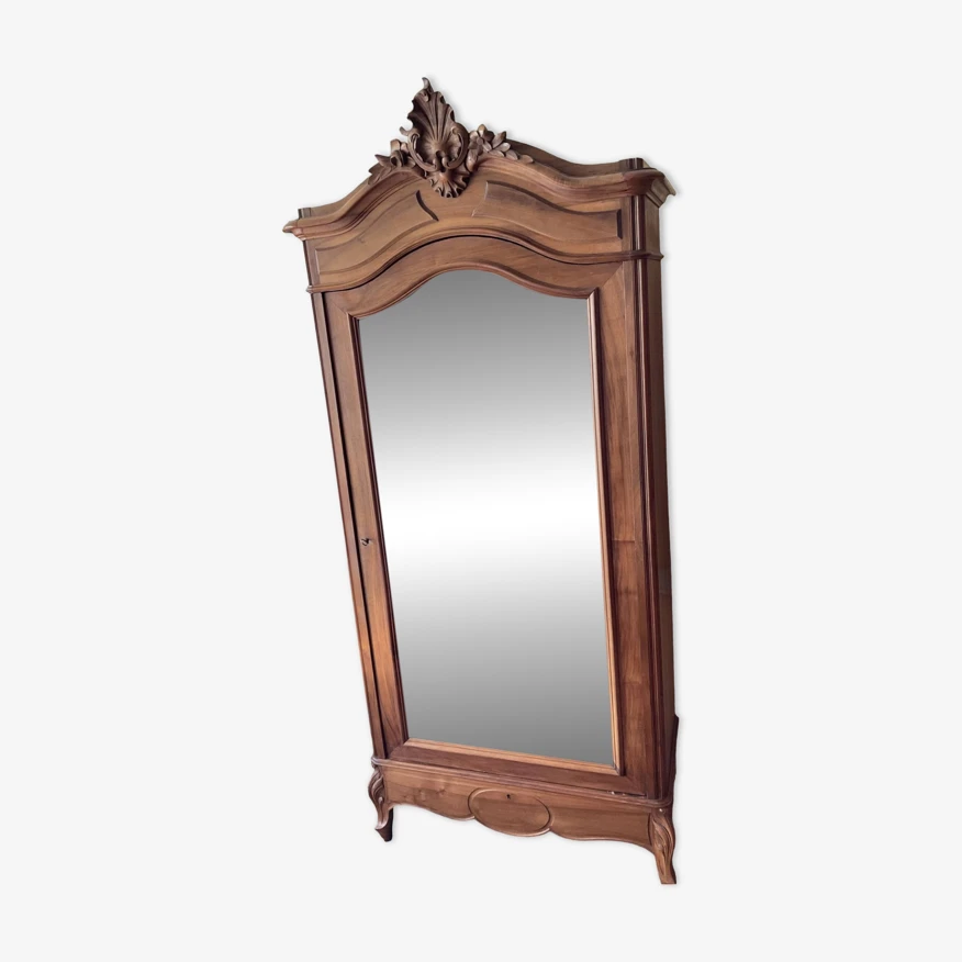 Bonnetiere or antique mirror cabinet in louis XV style walnut one door with mirror and one drawer at the bottom 4 removable shelves door with functional lock.