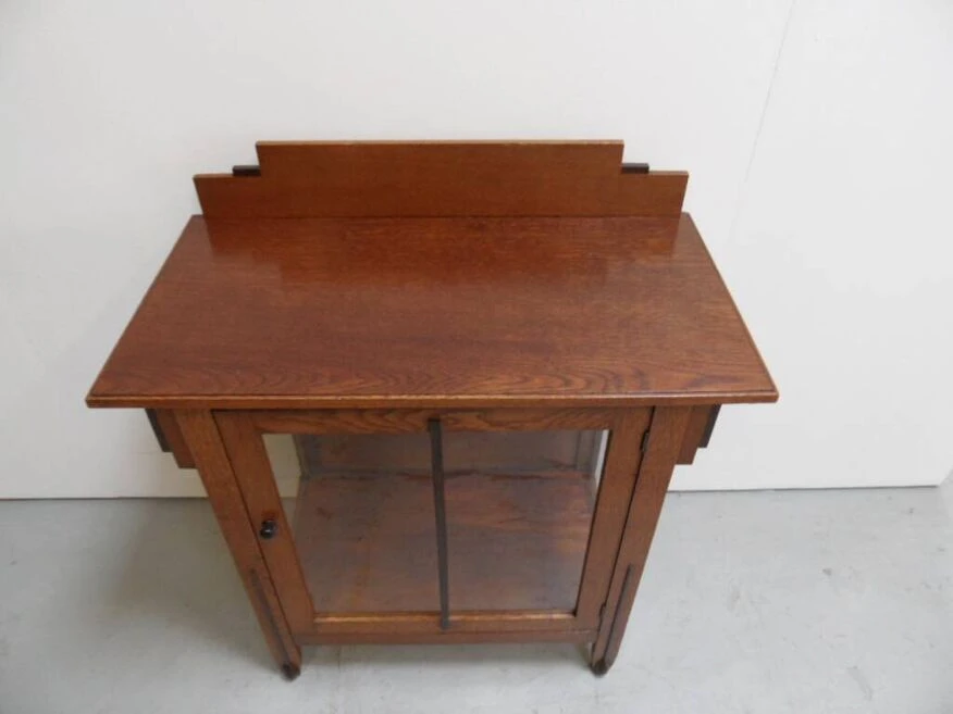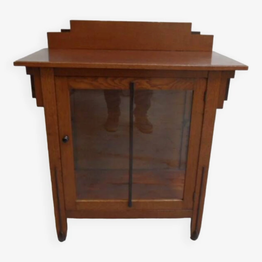 Vintage Display Cabinet Sublimated In Verdigris, 2 Doors With Beveled And Cut Windows, Wooden Top.