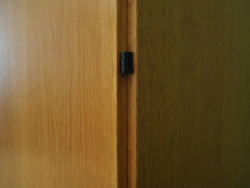 The wardrobe door is equipped with strong magnets that allow locking it.