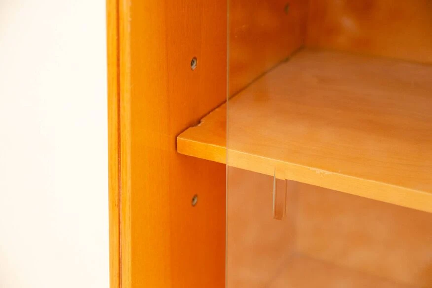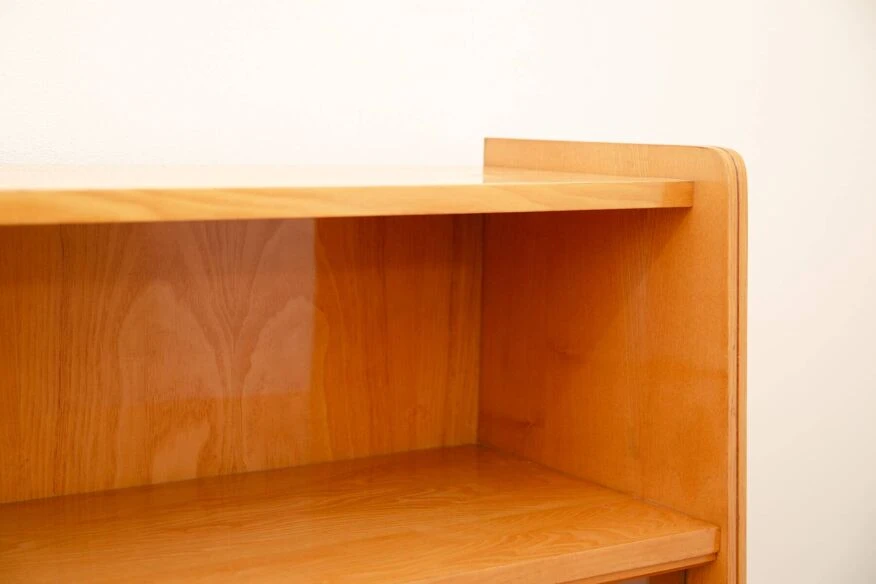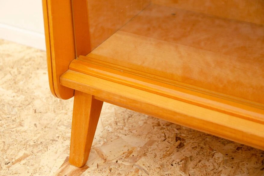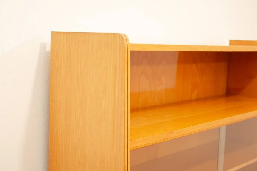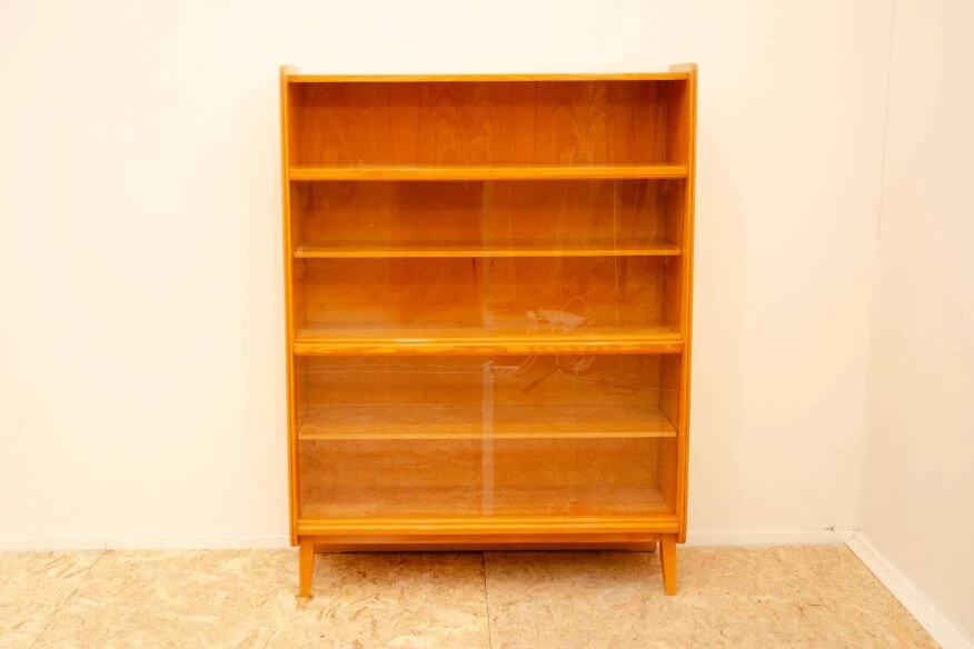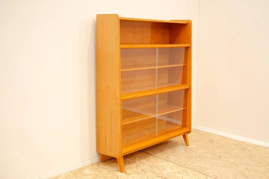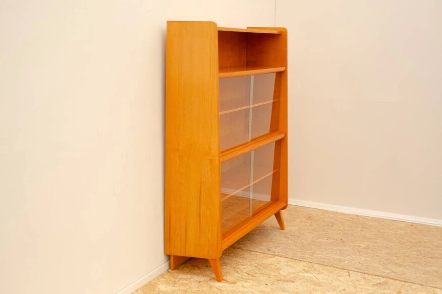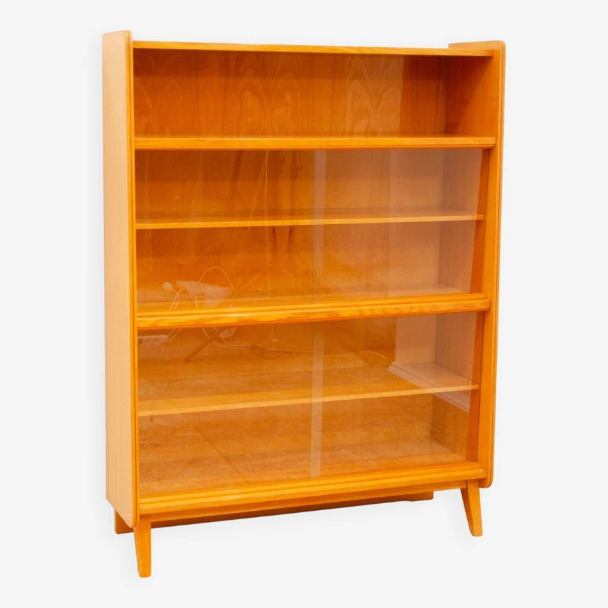 Bibliothèque vintage du milieu du siècle des années 1960. Il a été conçu par František Jirák et fabriqué par la société Jitona dans l’ancienne Tchécoslovaquie. Présente un design simple, une section vitrée avec cinq espaces de rangement. Dans l’ensemble en très bon état vintage, présente de légers signes d’âge et d’utilisation. Il est fait de bois de hêtre. Hauteur : 157 cm largeur : 118 cm profondeur : 41 cm Choisissez parmi notre offre de fauteuils en complément de cette bibliothèque du milieu du siècle.