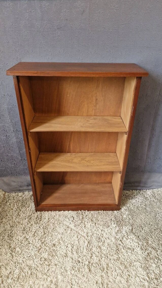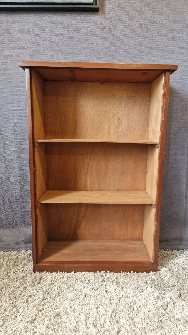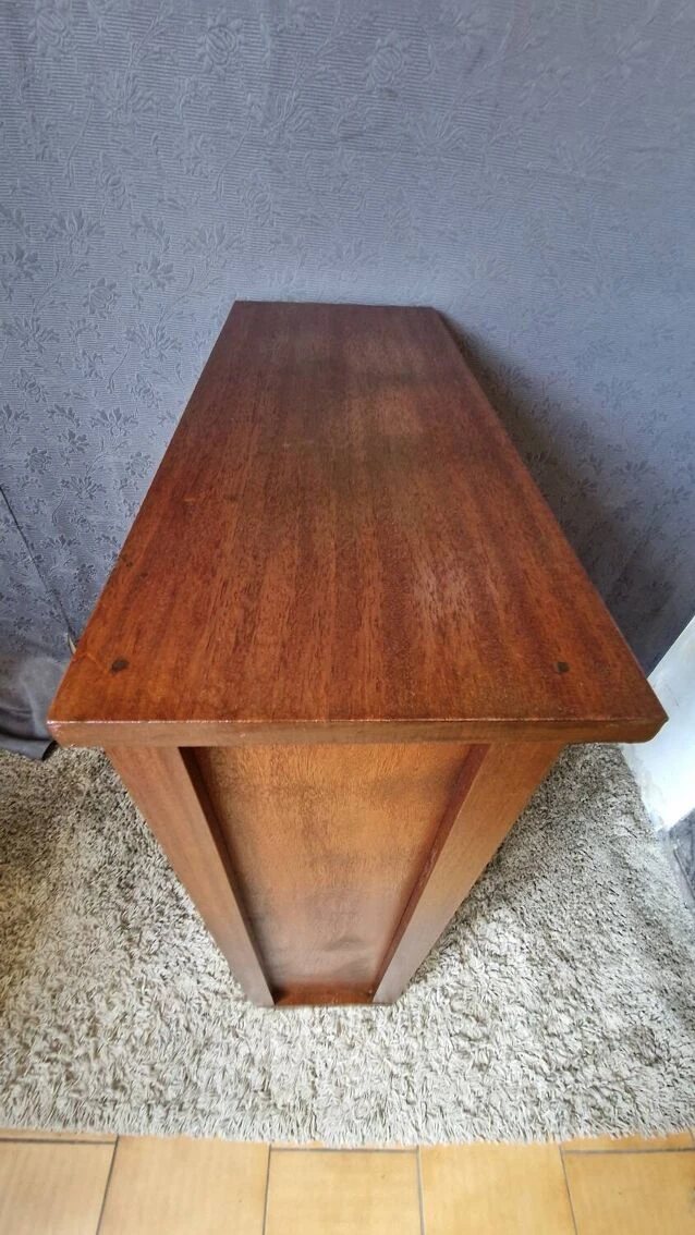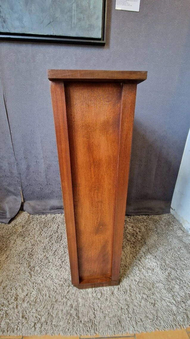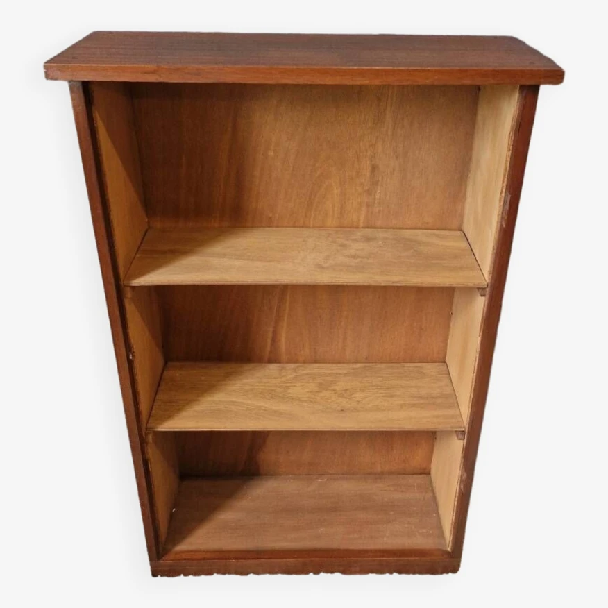Patinated mahogany bibus composed of two shelves. Sober line. Dimensions of the top: 68 x 28 cm and the body: 63.5 x 26 cm. Good condition.