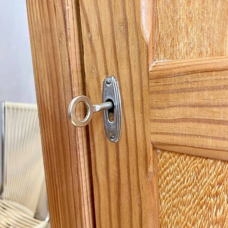 Its door locks, with its original lock and key please!