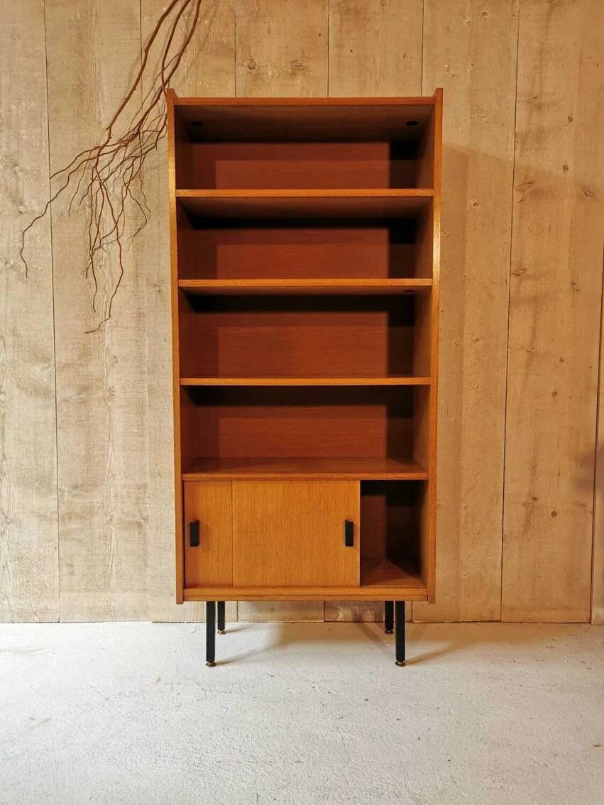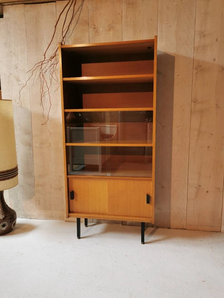 Shelf from the 60s with display cabinet. 4 shelves including 2 with removable windows, cupboard with sliding doors.