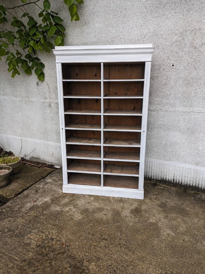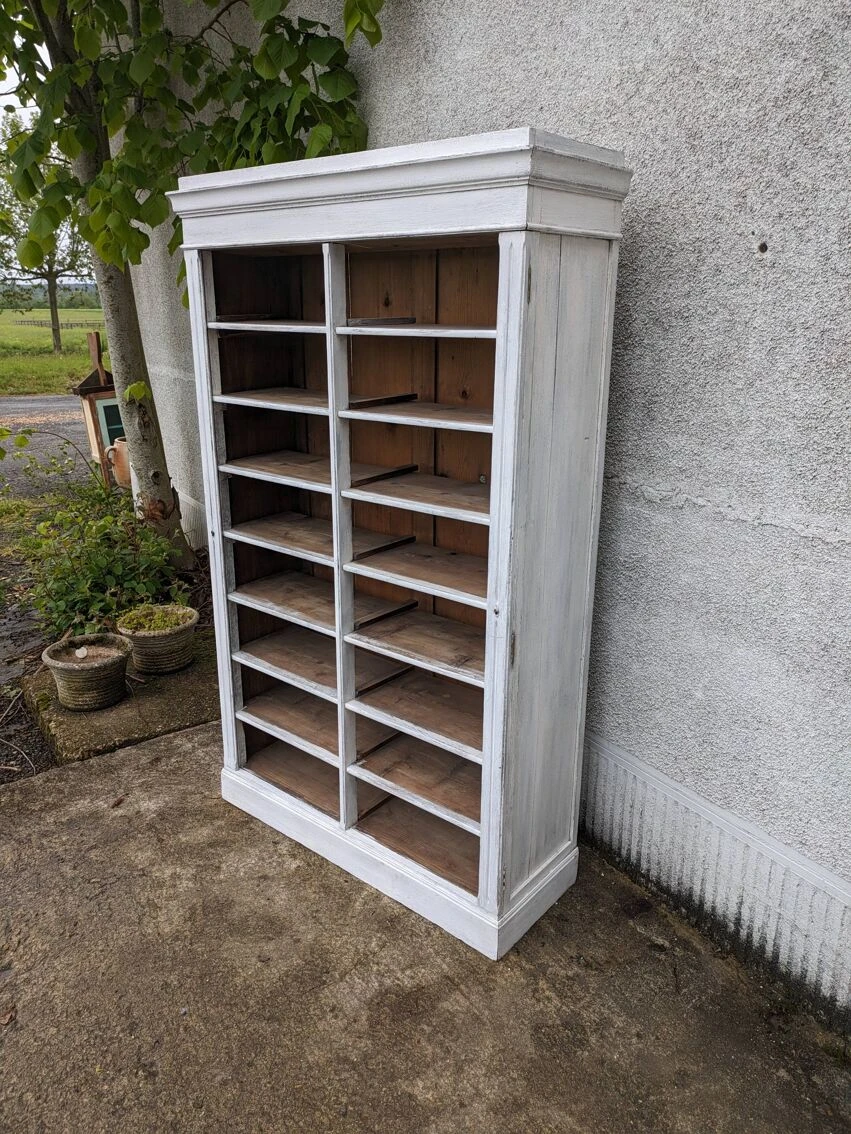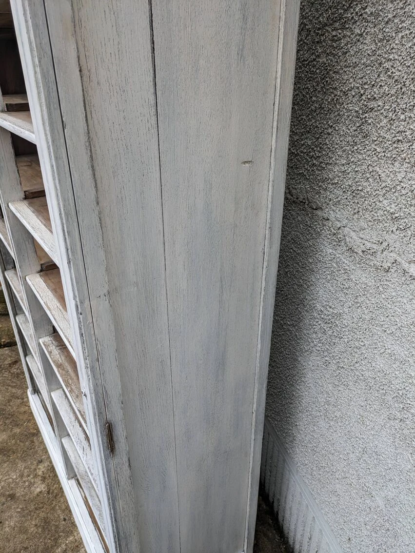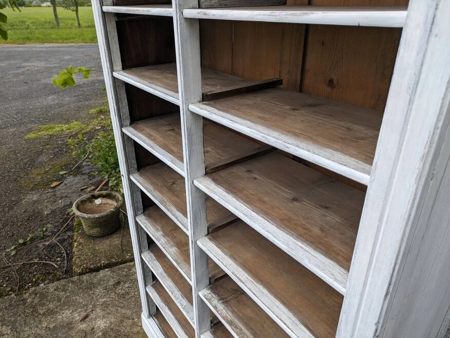 Old cardboard box painted in patinated white.