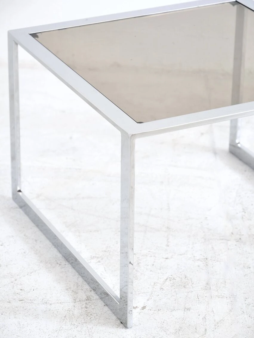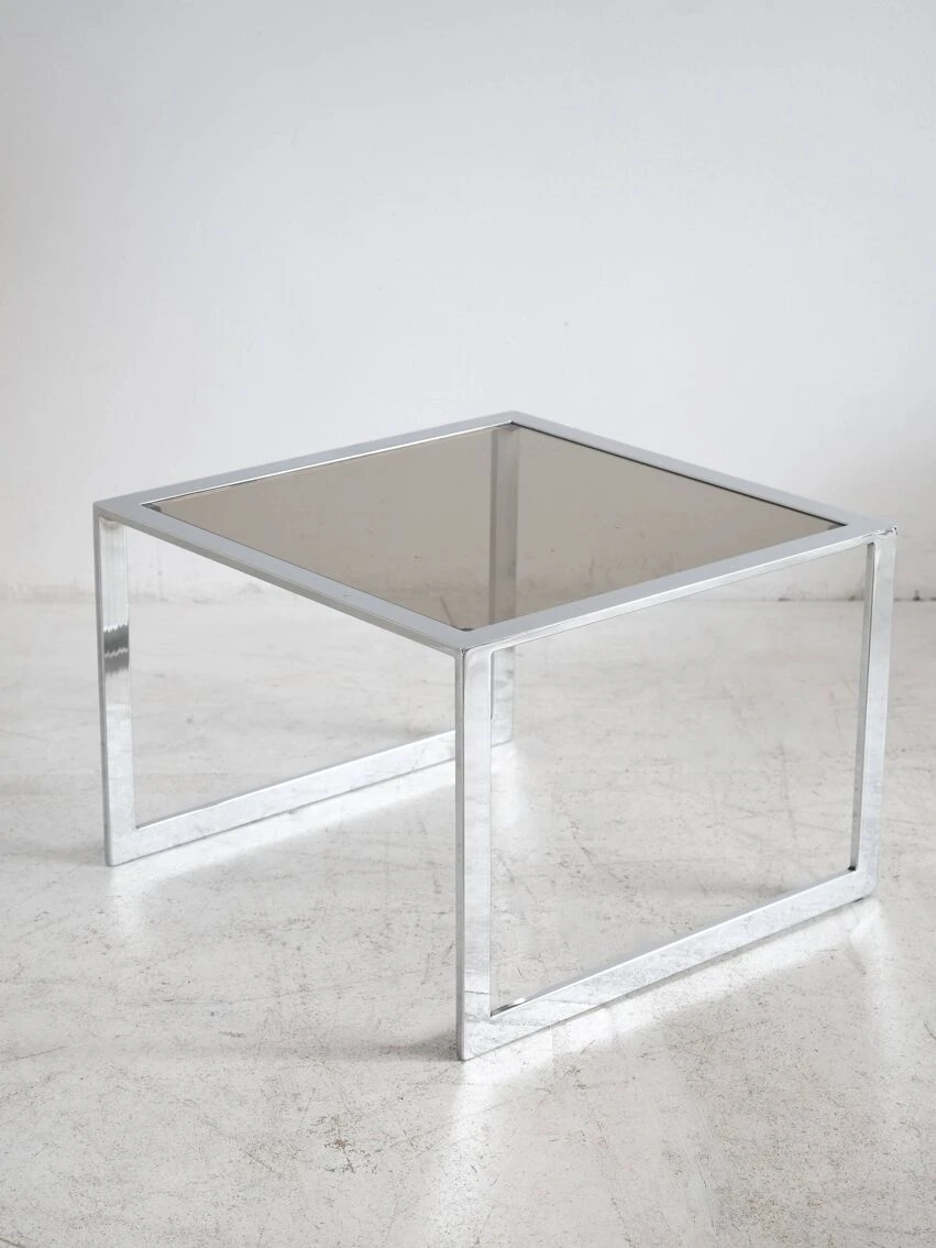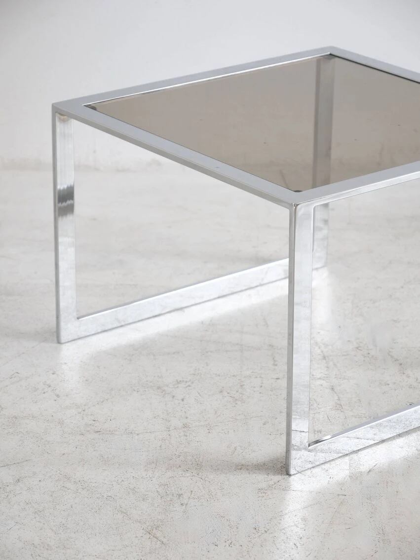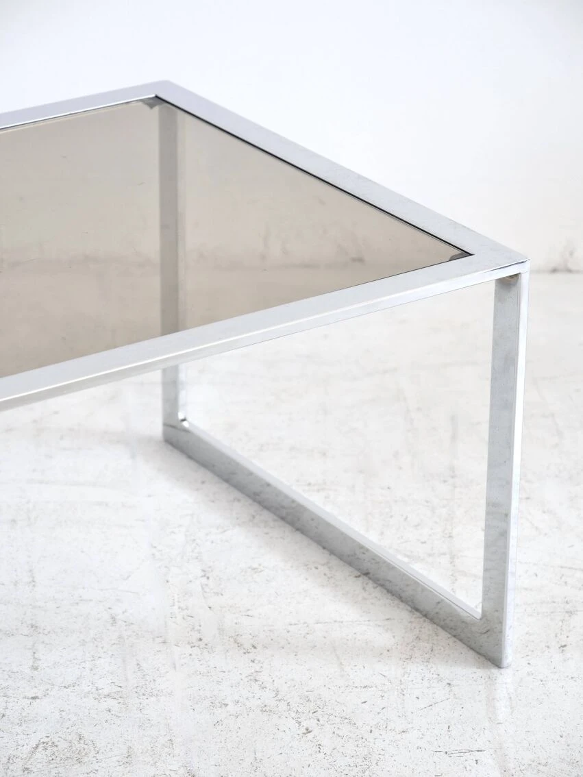 Very beautiful proportions, the chrome steel and smoked glass table remains in good condition, and has some discreet traces of use.