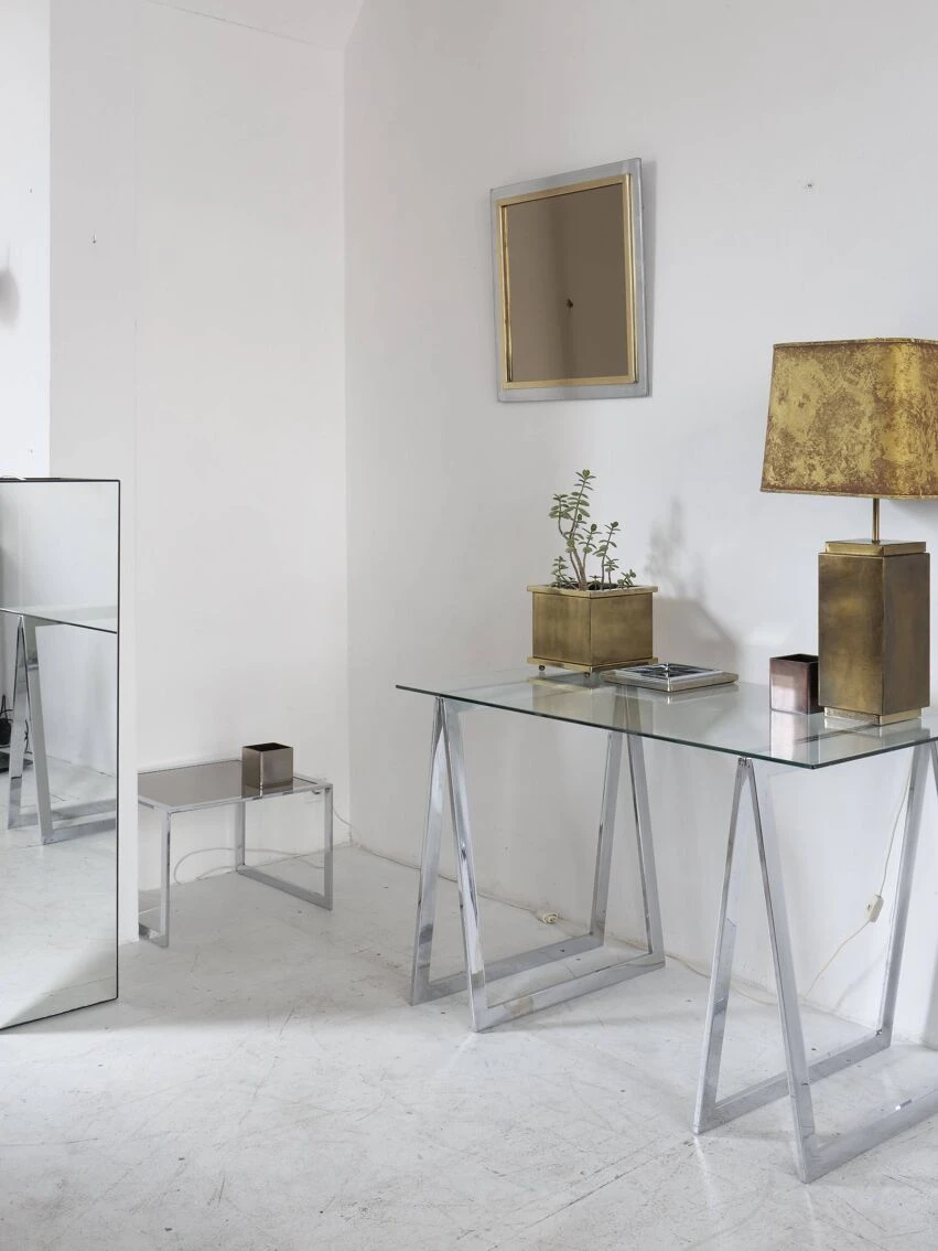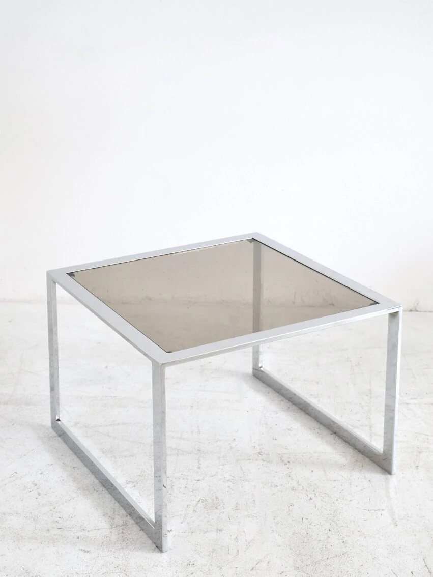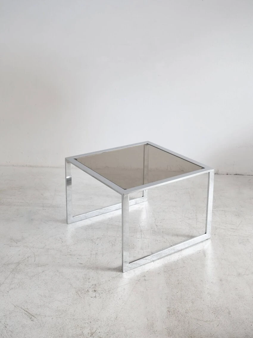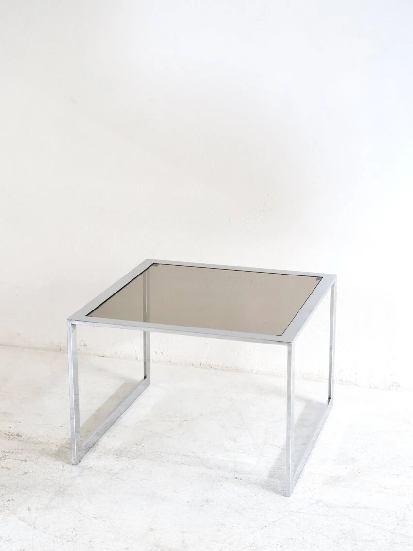 Very beautiful proportions, the chrome steel and smoked glass table remains in good condition, and has some discreet traces of use.