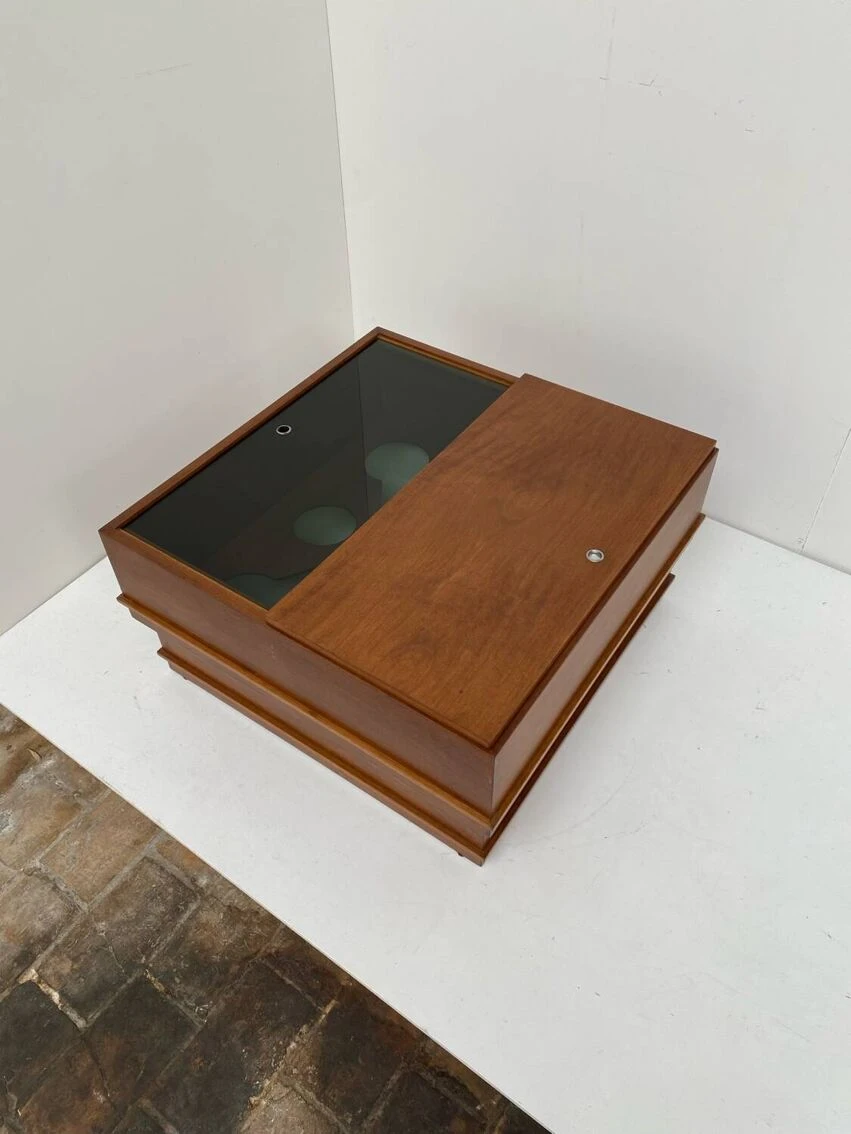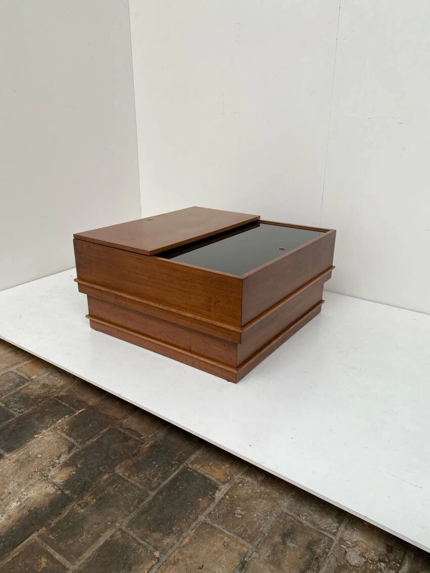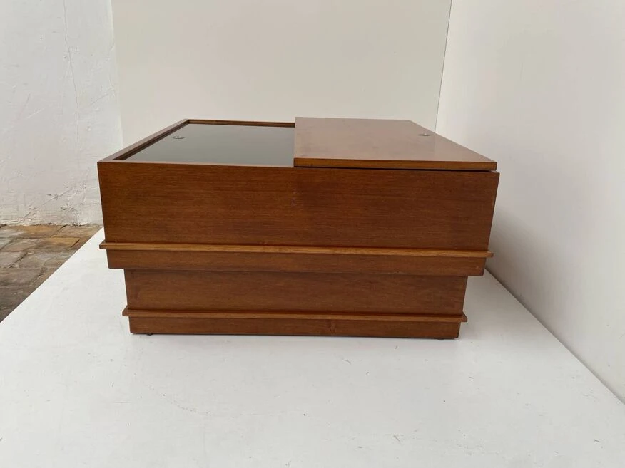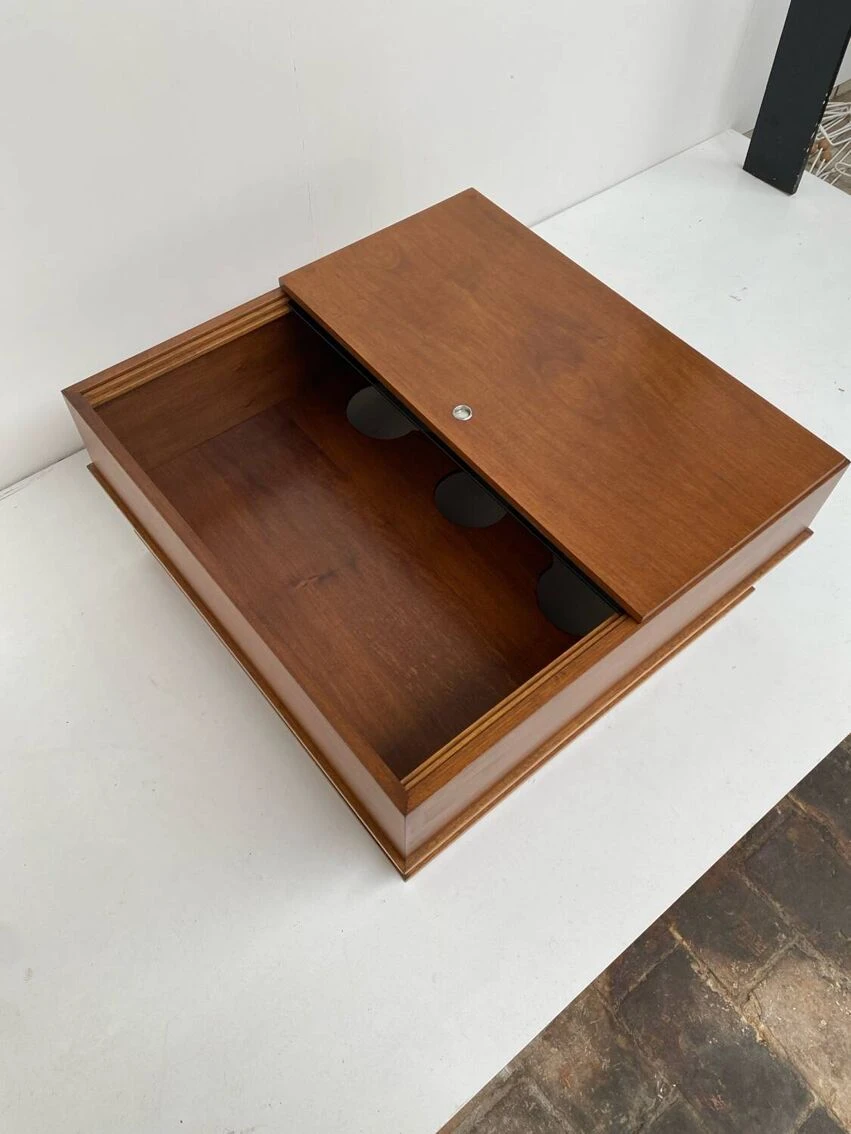 Vintage square coffee table with place inside for storage.