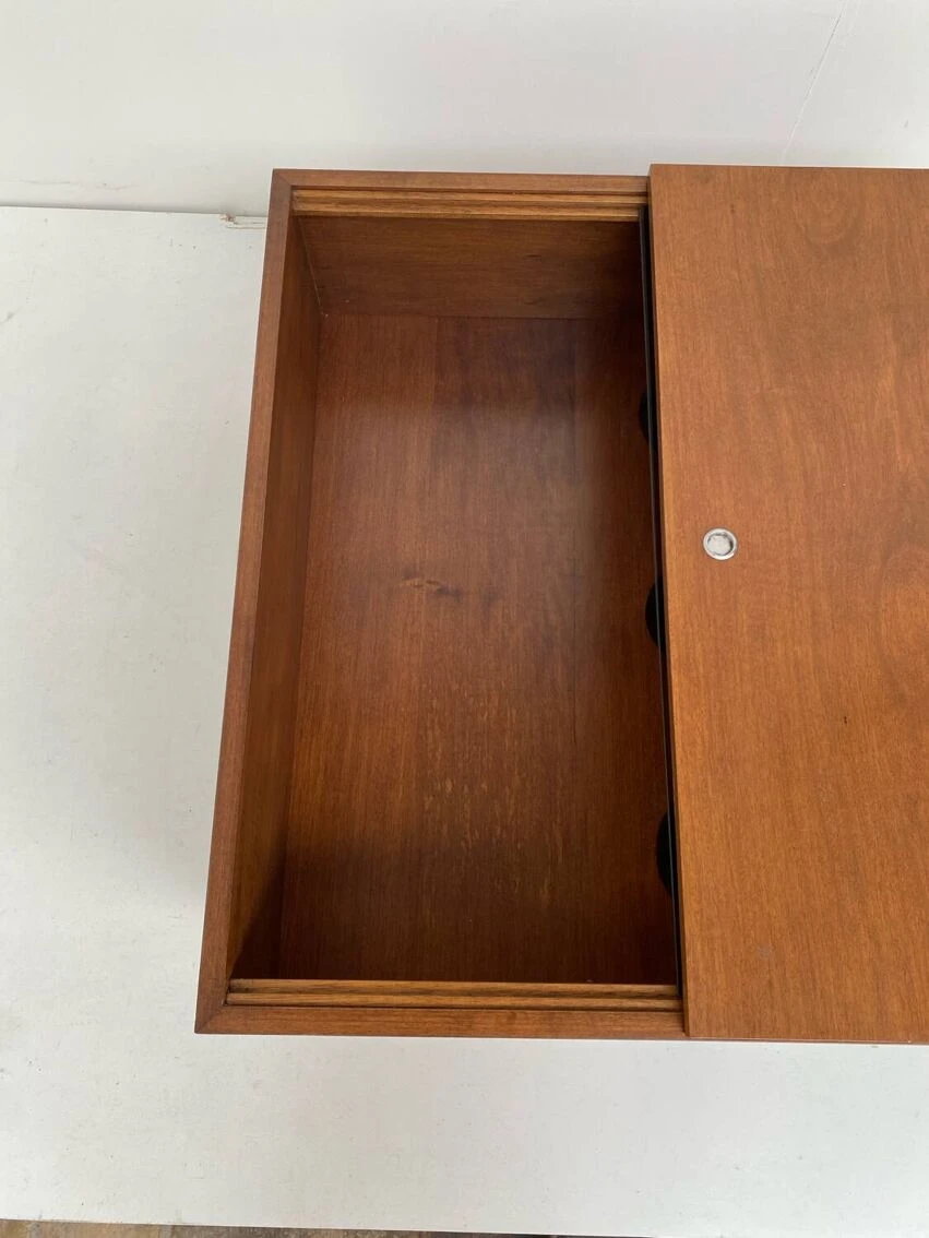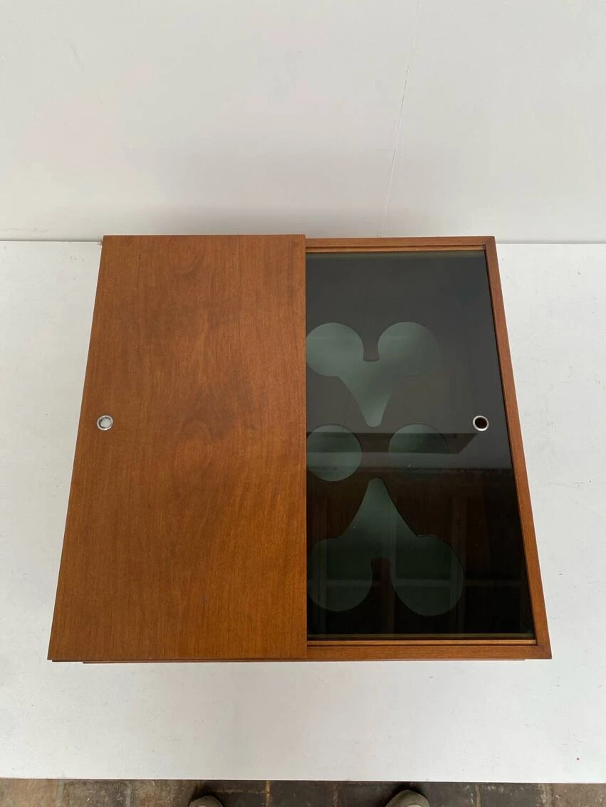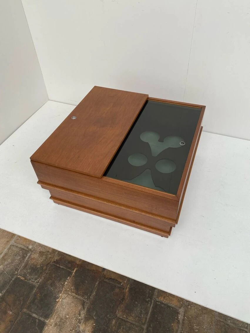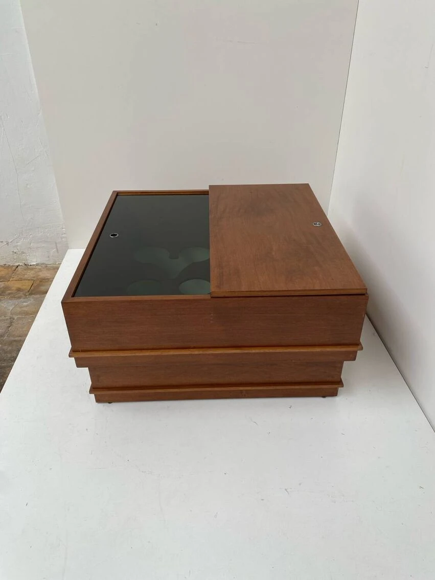 Vintage square coffee table with place inside for storage.
