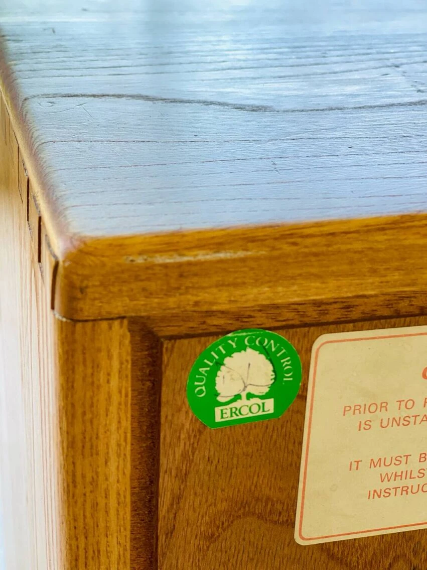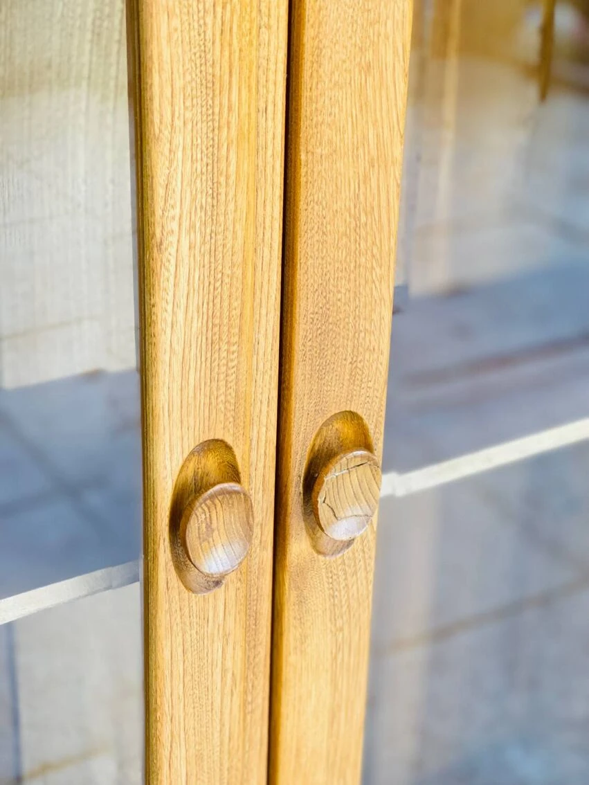 Ercol teak side furniture dating from the sixties. Composed of two storage doors. May show traces of life linked to its age. To hang on the wall. Dimensions: h104 l91 p29. Delivery possible throughout France.