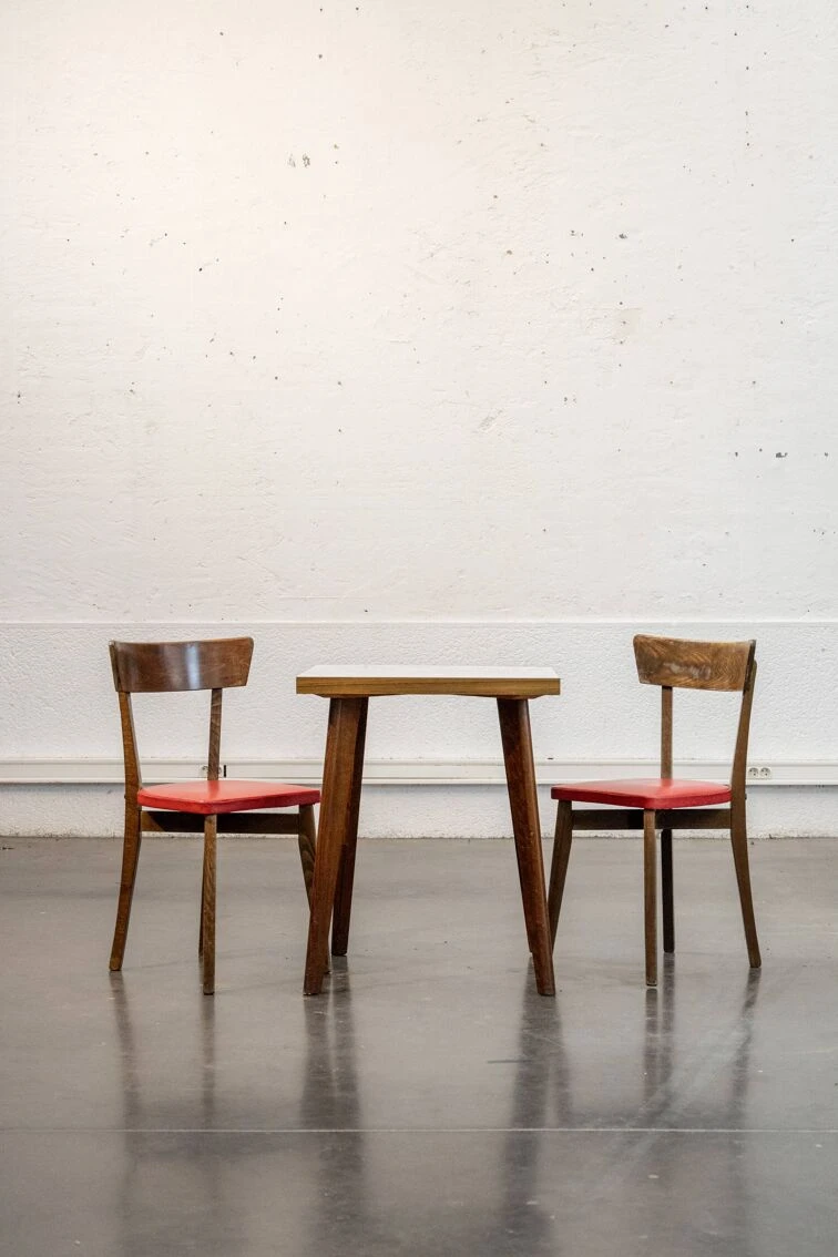 Wooden bistro table formica top very good condition 2 in stock at the moment length: 60 cm height: 73.5 cm depth: 60 cm.