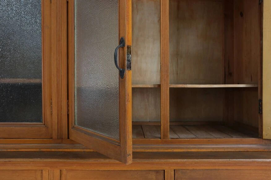 Belgium / 1890 / monastery cabinet / pine wood, figured glass / antique / mid-century / rustic.