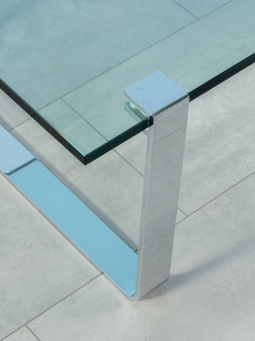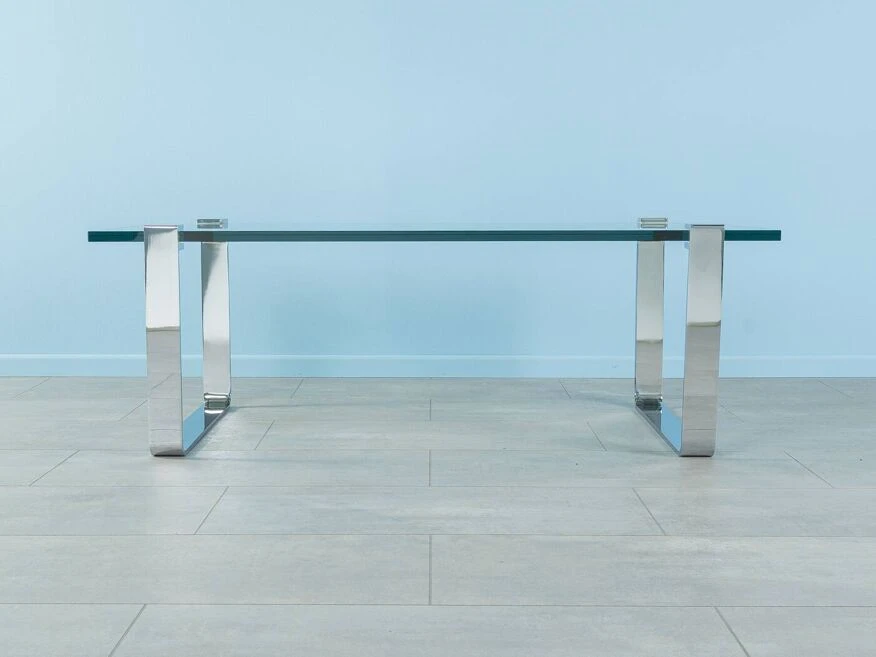 Rare coffee table k 831 by friedrich wilhelm möller for ronald schmitt from the 1970s. 19mm thick glass top with high quality stainless steel frame.