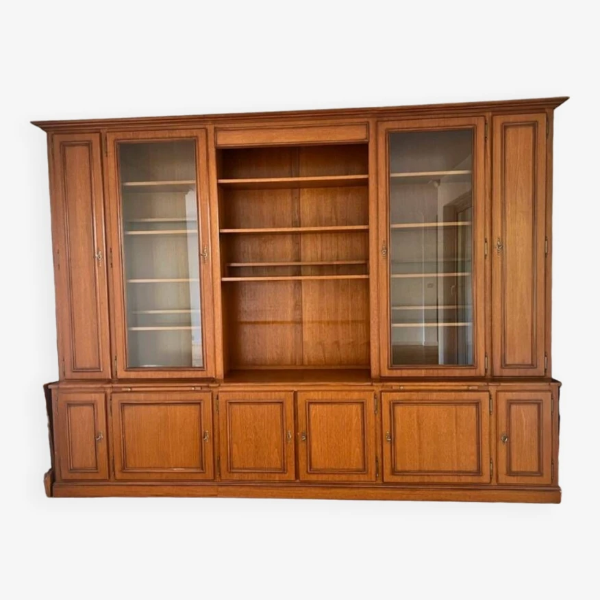 Magnificent cherry wood bookcase or dressing room in excellent condition. The look of oiled wood is absolutely stunning. Wooden bookcase. Bookcase in medium blond cherry wood. Wooden dressing room. Cherry wood dressing room. Large storage unit. Dresser. Cupboard. Antique furniture.