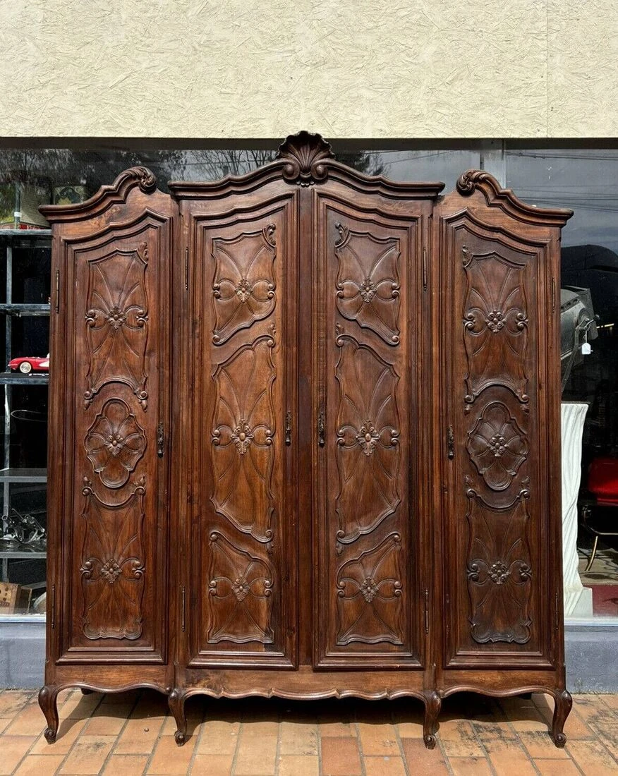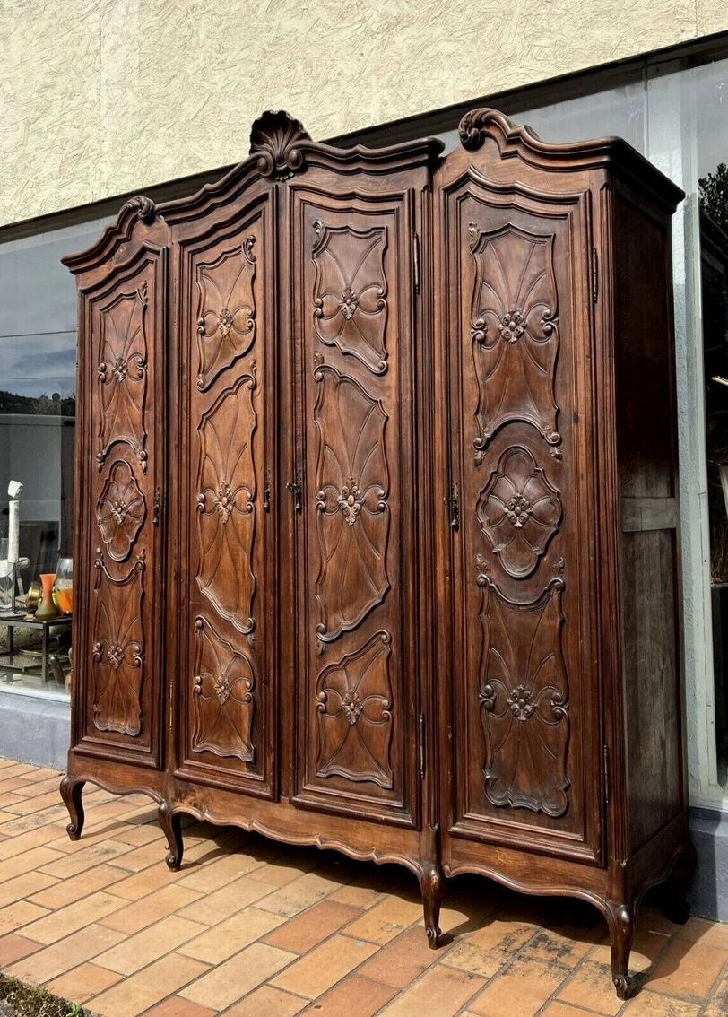 Louis XV style wardrobe in solid walnut circa 1880-1900.