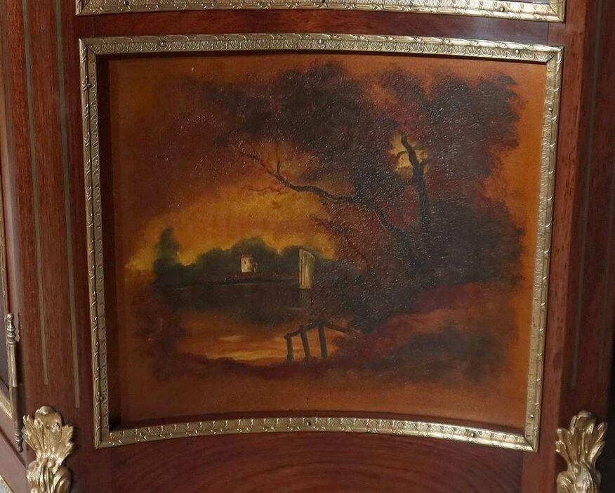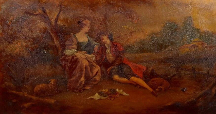 The lower part of the door is a martin varnish panel depicting a romantic scene with lovers picnicking under a tree.