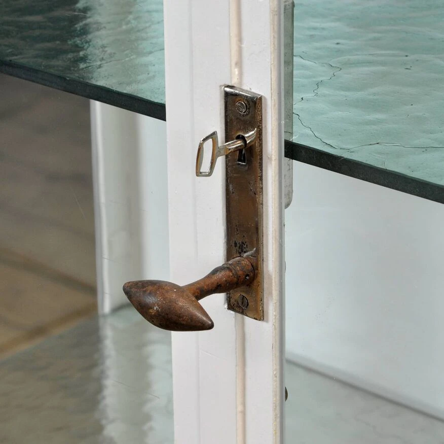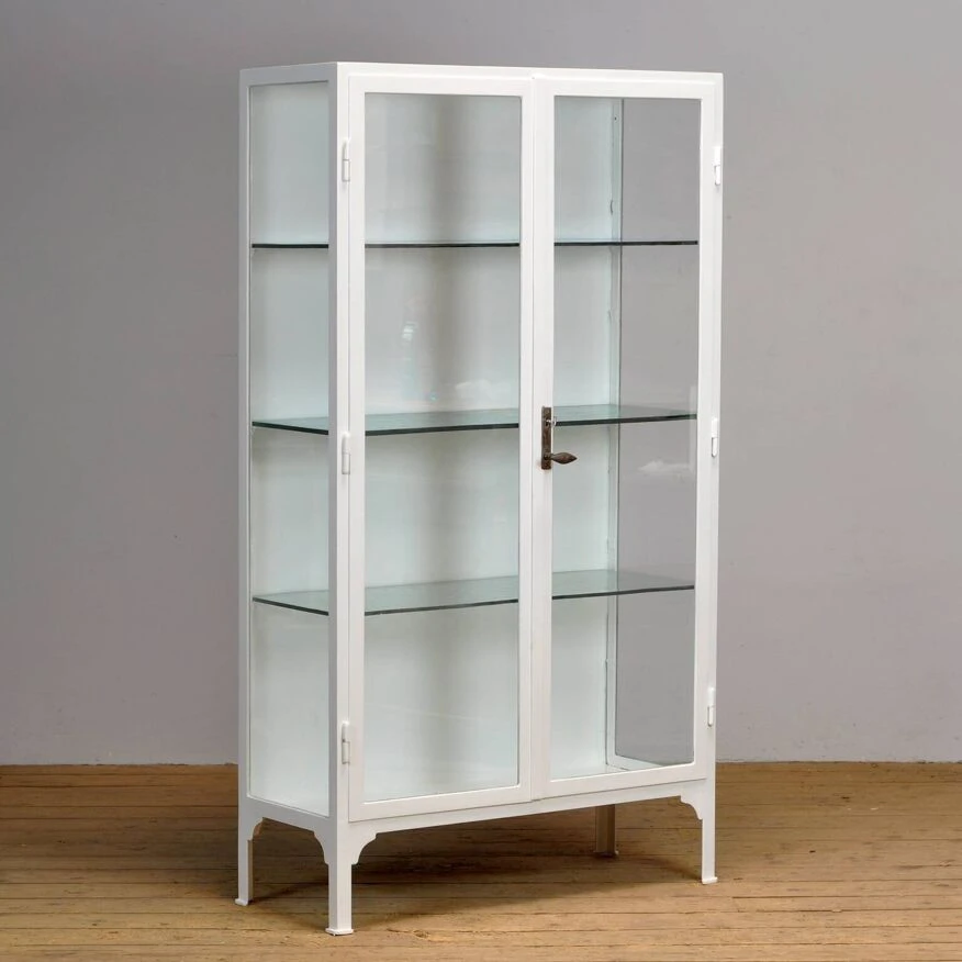 The cabinet is produced in hungary and is made of thick iron and antique glass.
