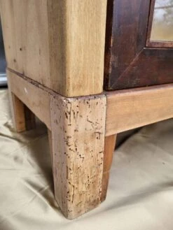 Old display case with 4 sliding glass doors, in one piece (length 3 meters) from a natural history museum.