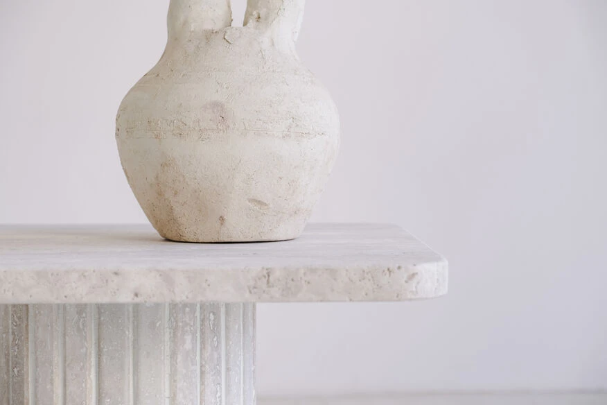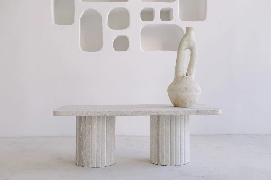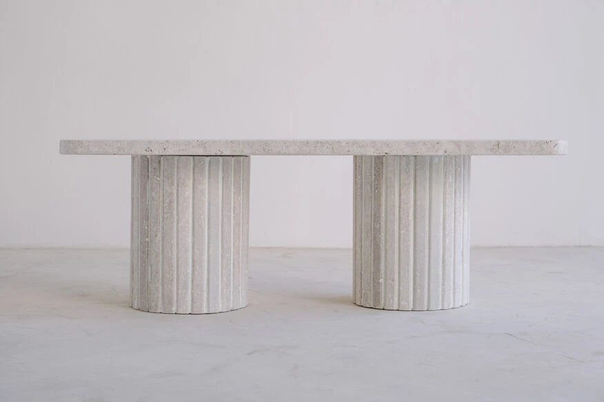 the whole. Thanks to their custom-made craftsmanship, each piece promises to be unique. The stone is porous and has color variations ranging from ivory white to light beige.