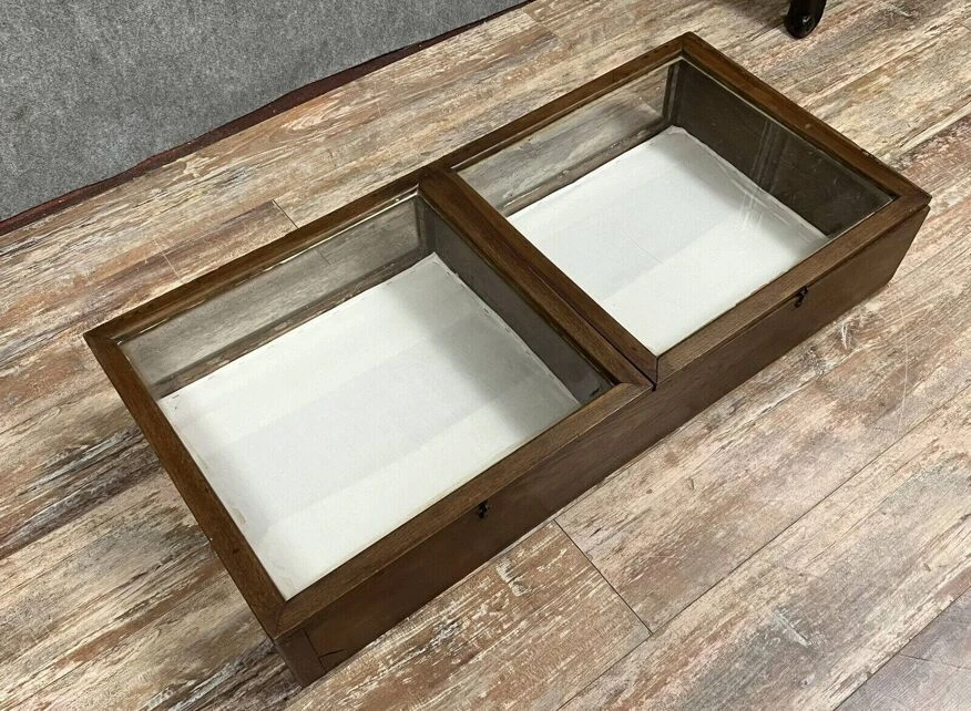 Old double store window to stand from the napoleon III period in solid wood around 1850 opens with 2 glass flap doors dimensions h20 X 108 X 50.