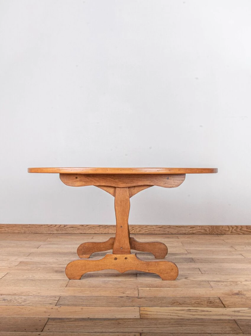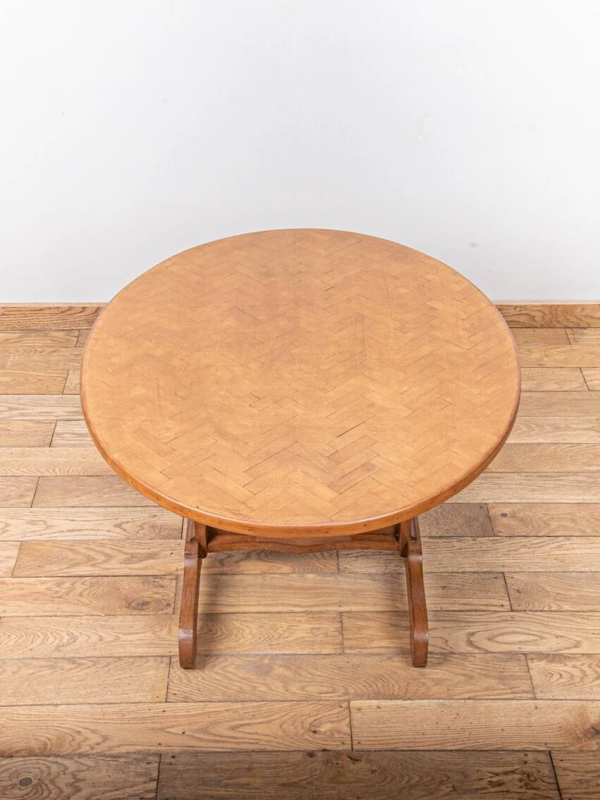 Old coffee table or side table inspired by winegrower’s tables, the top is made of old-fashioned parquet for a rare and unique result! The whole thing is made of solid oak and this table can also be used as a pedestal table for a vintage & country atmosphere. In very good condition, in its original condition and its wear over time. Dimensions (hxwxd): 49 x 91.3 x 70.7 cm. Delivery within 2 to 14 working days via cocolis carrier or free collection in store.