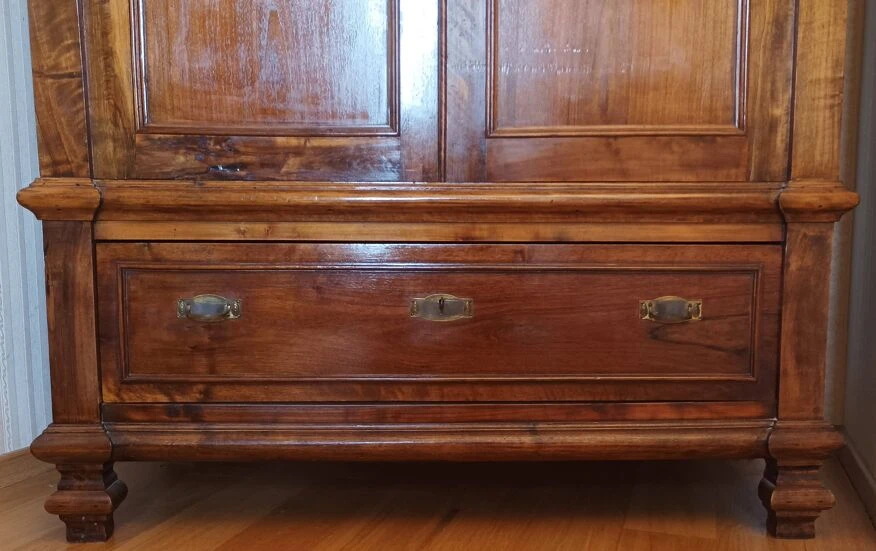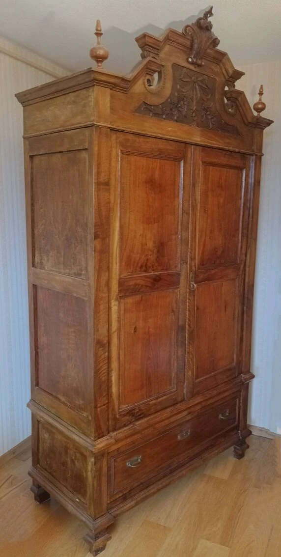 Piedmontese walnut wardrobe. 19th century. Dismountable cabinet. Height 248 cm. Width 128.5 cm. Depth 56 cm. Personalized delivery: Once your purchase is finalized, we carry out a final check of the item, then take great care with the packaging before shipping it. Large items are shipped on a pallet to your home within 7 to 15 days in mainland France and 7 to 30 days in Corsica and internationally. Delivery within the home can be made via a private carrier for mainland France excluding islands only (the time may be longer). Personal delivery possible at our warehouse located in Isère (38). Important: delivery rates for large items are continental rates (excluding islands). For Corsica as well as the European islands, please contact us.