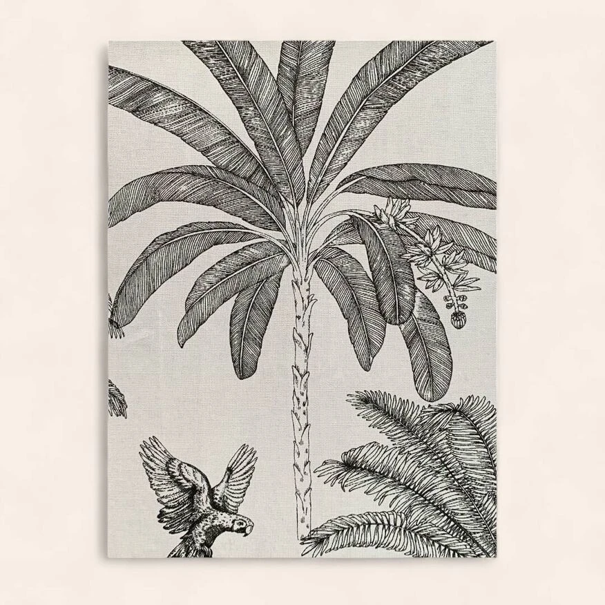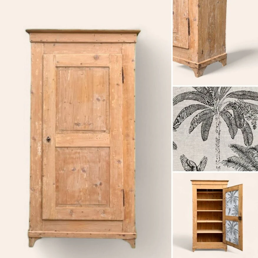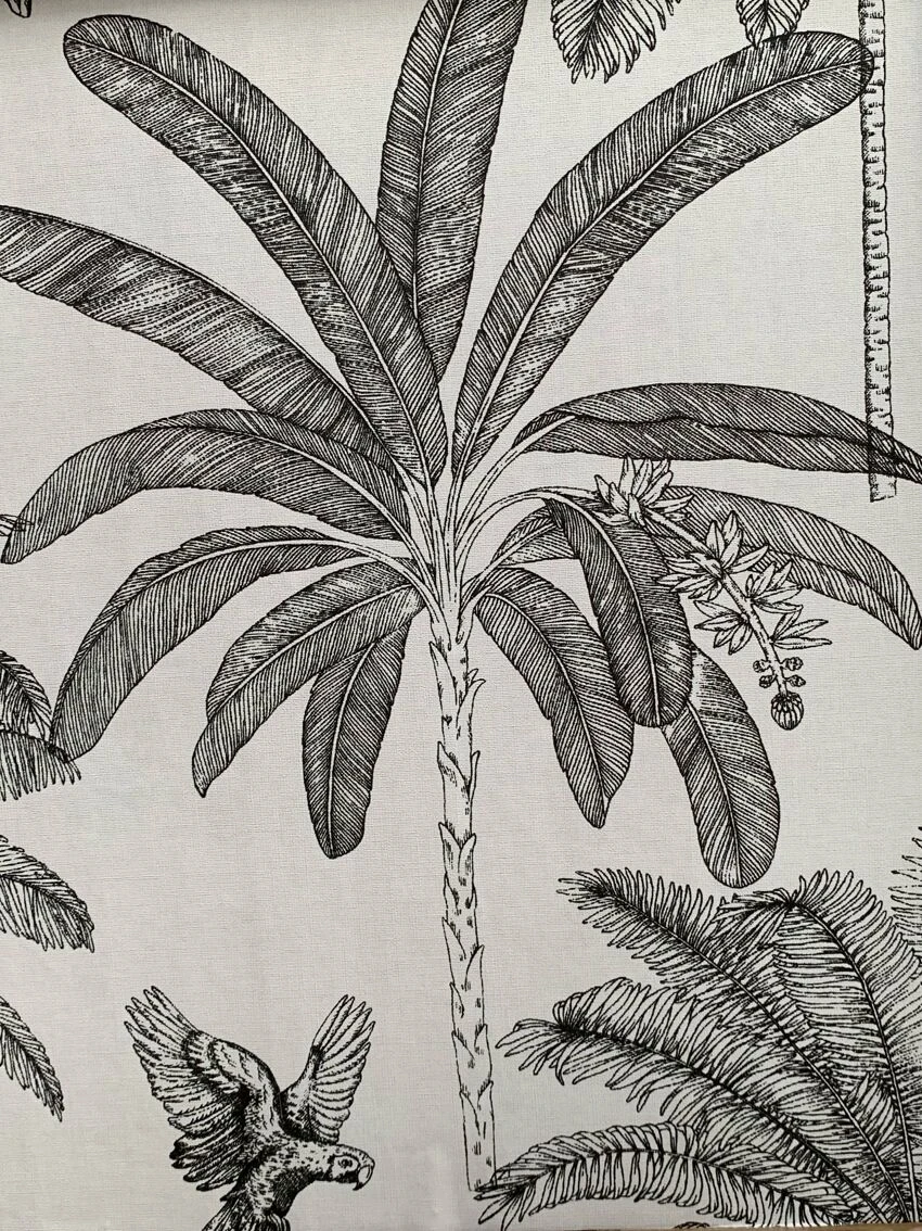 A palm grove wallpaper is applied to the inside of the door.