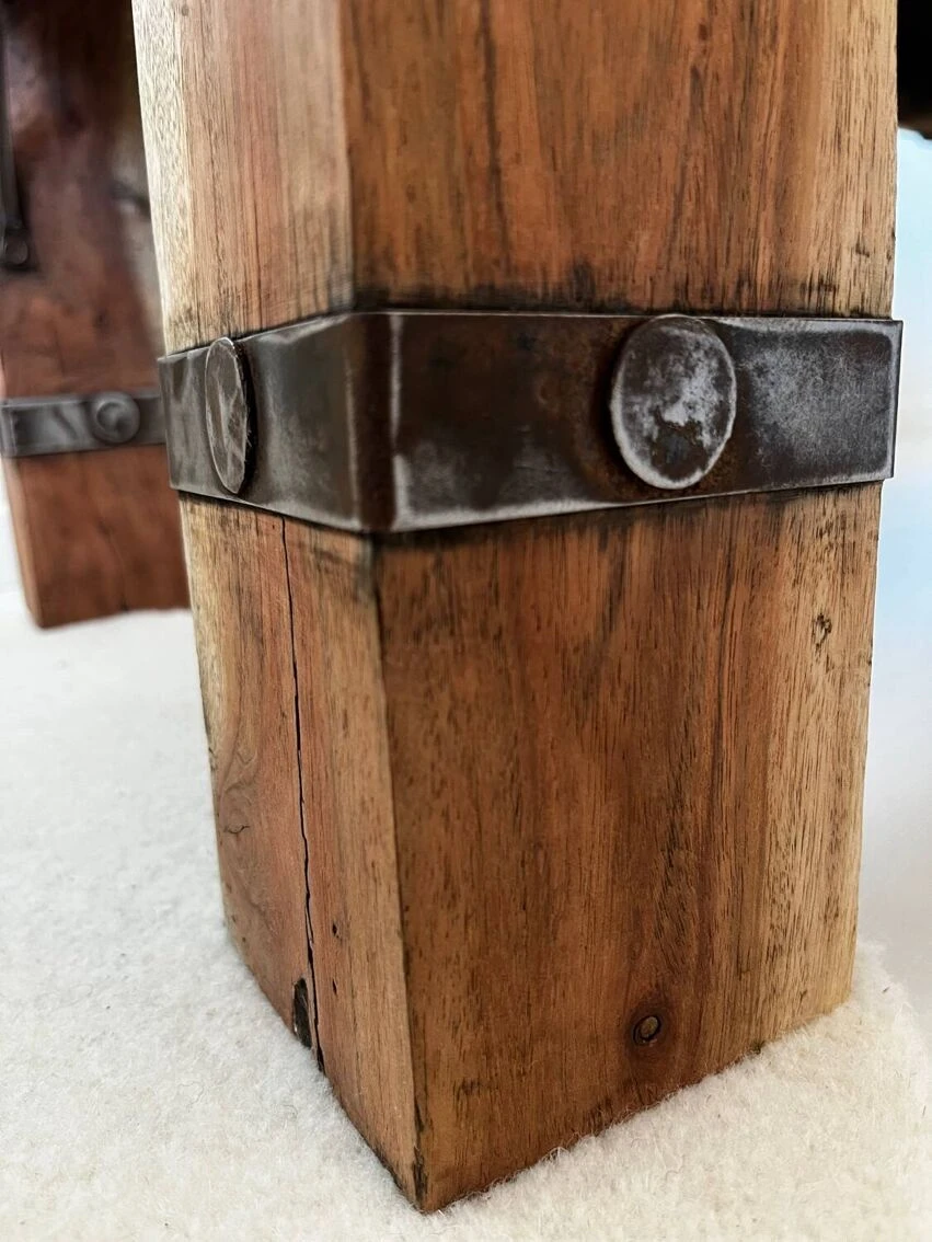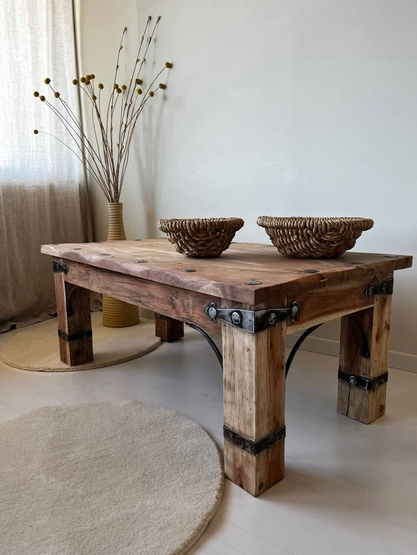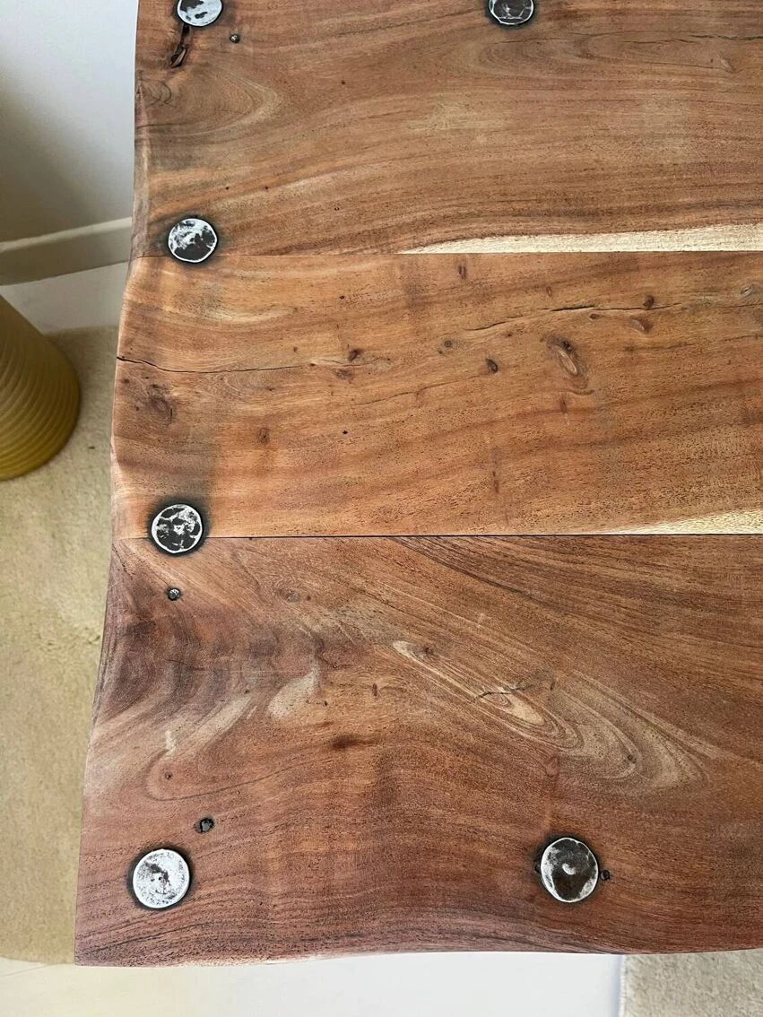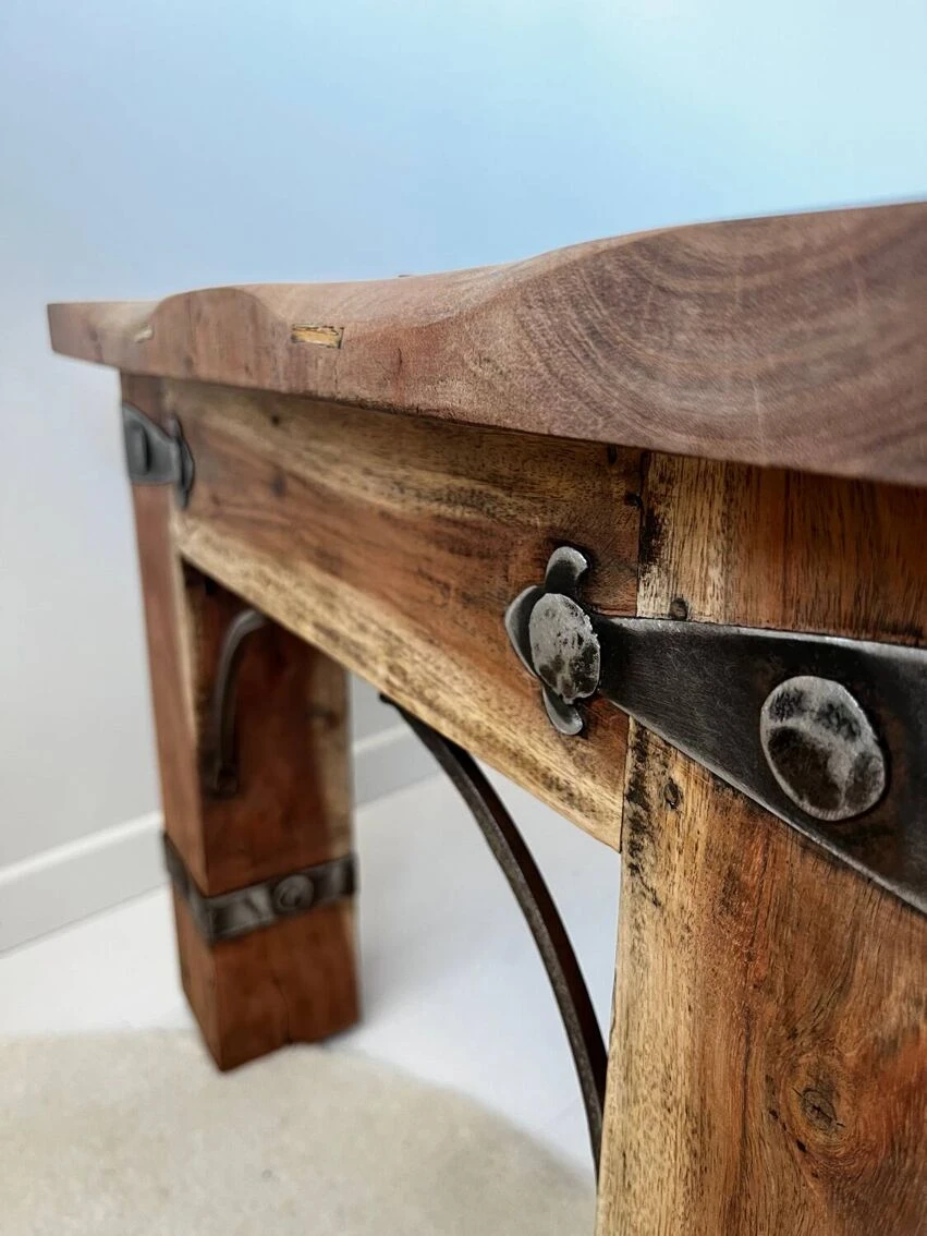 Superb rectangular coffee table in solid raw acacia and fittings.