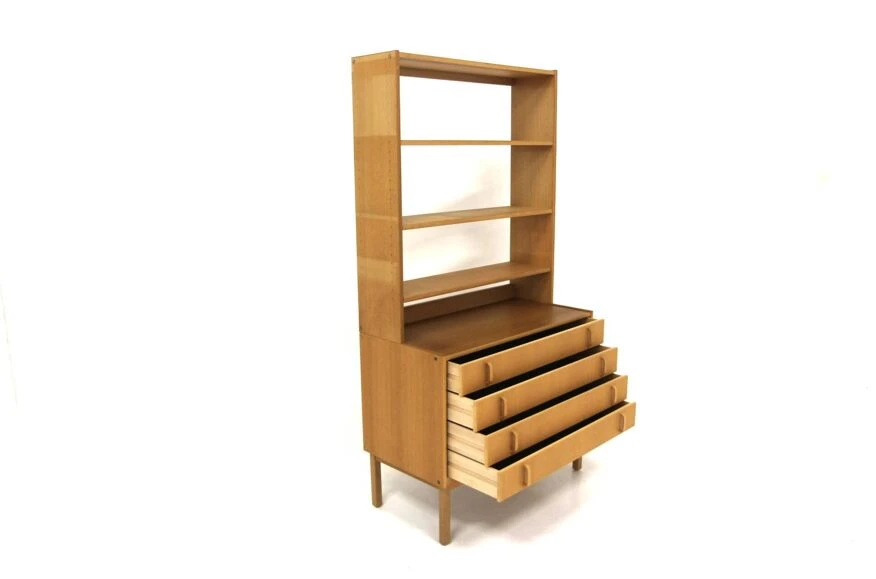 Oak bookcase designed by bertil fridhagen and produced by the swedish manufacturing house bodafors in the 1960s.