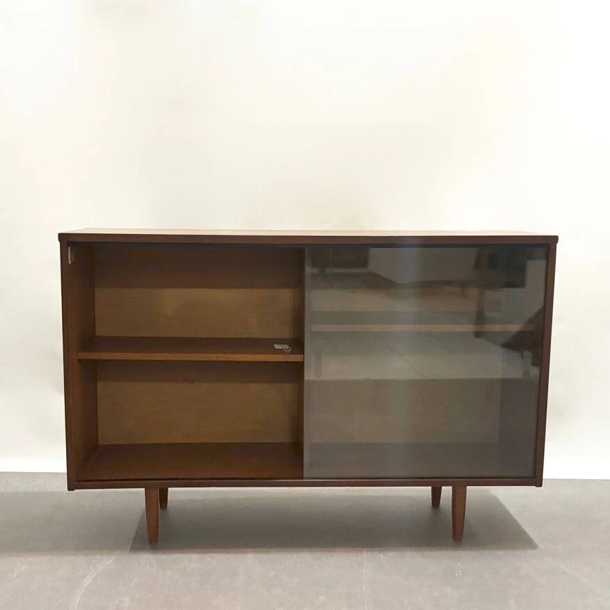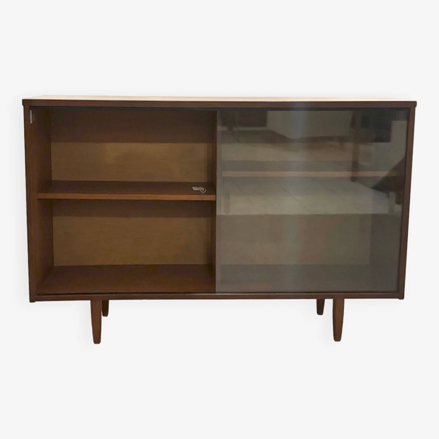 Pretty scandinavian style low glass bookcase in teak, 1960s.