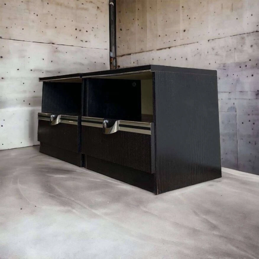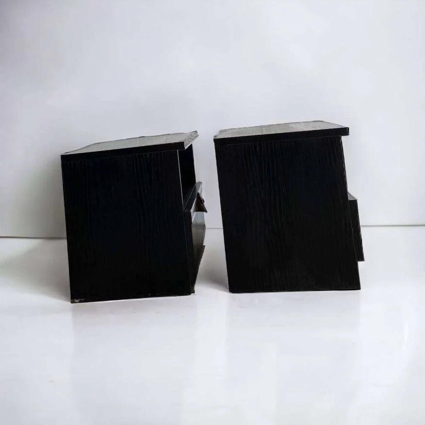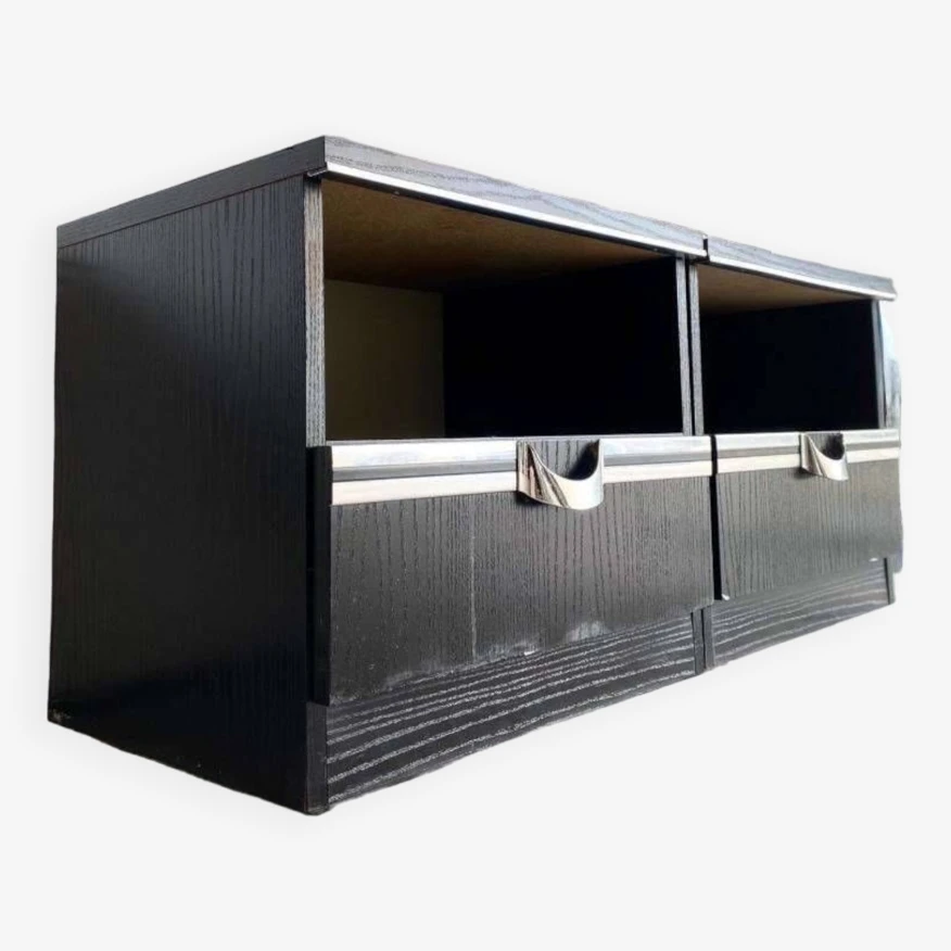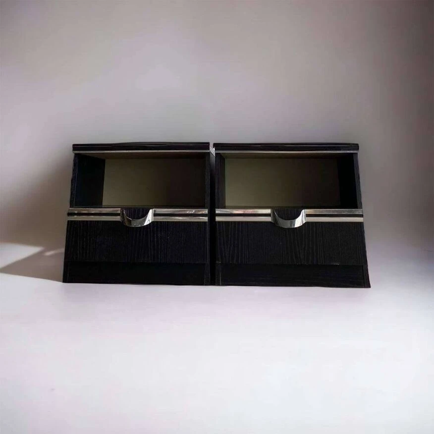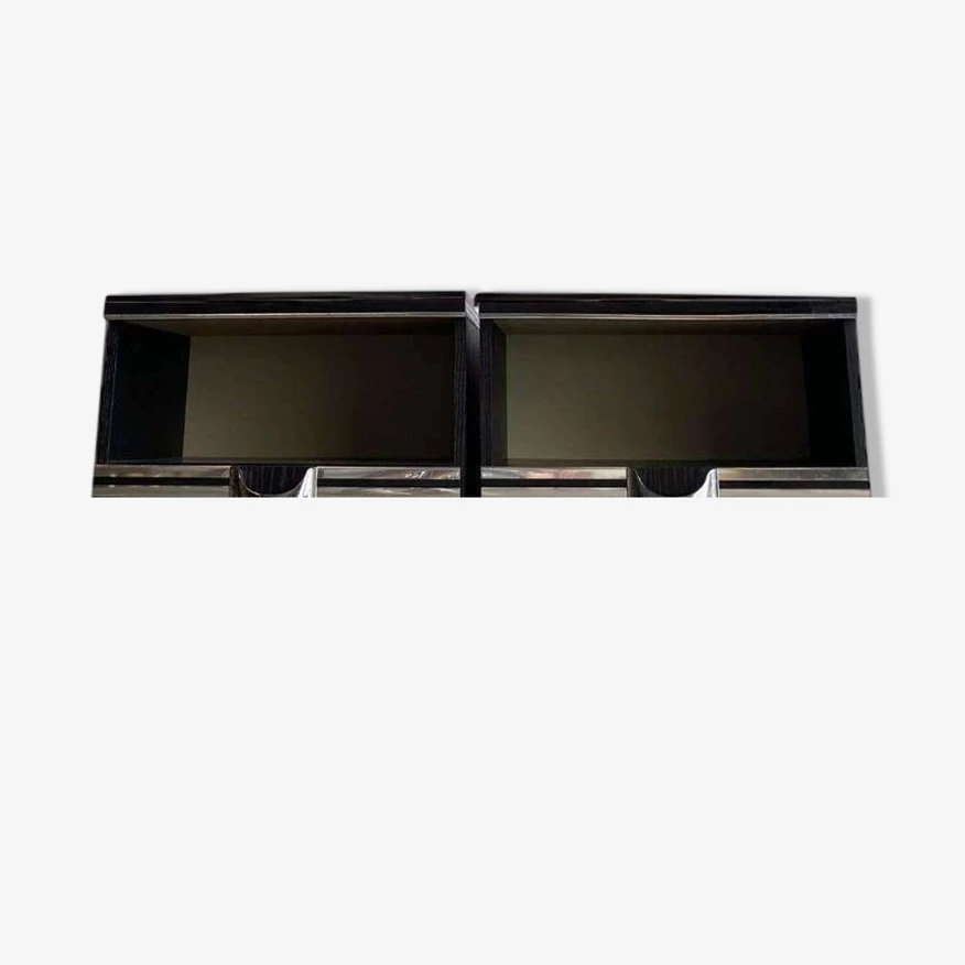 50x40x45 hours set of 2 black vintage bedside tables / mini cabinets 2 retro mini cabinets with open space and drawer, black and chrome here and there the cabinets have been tested with black paint fixed price don’t hesitate to take a look check out my other posts for more fun posts.