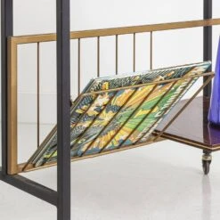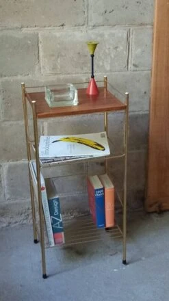 Vintage Side Table From The 60s Formica Top Imitation Rosewood Black And Gold Metal Legs