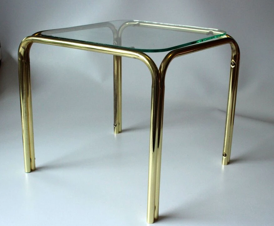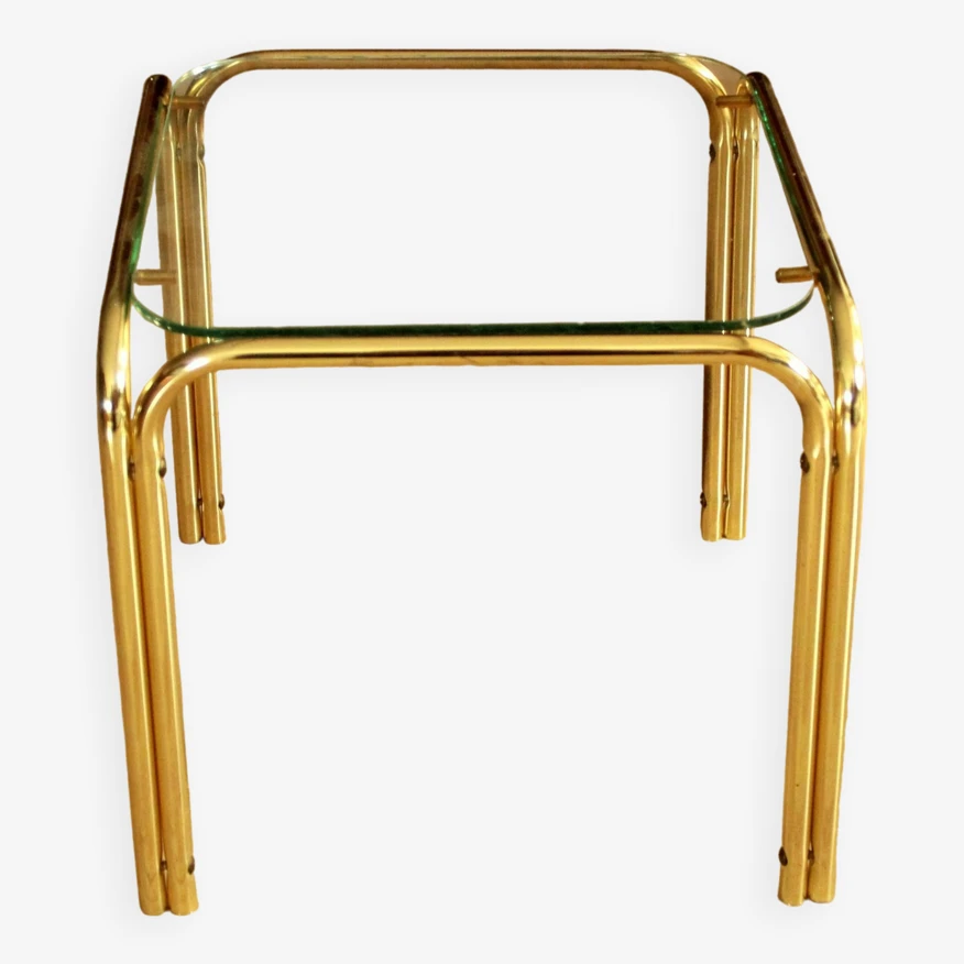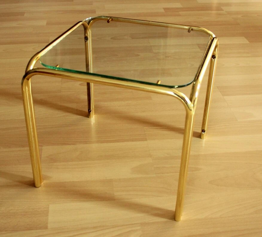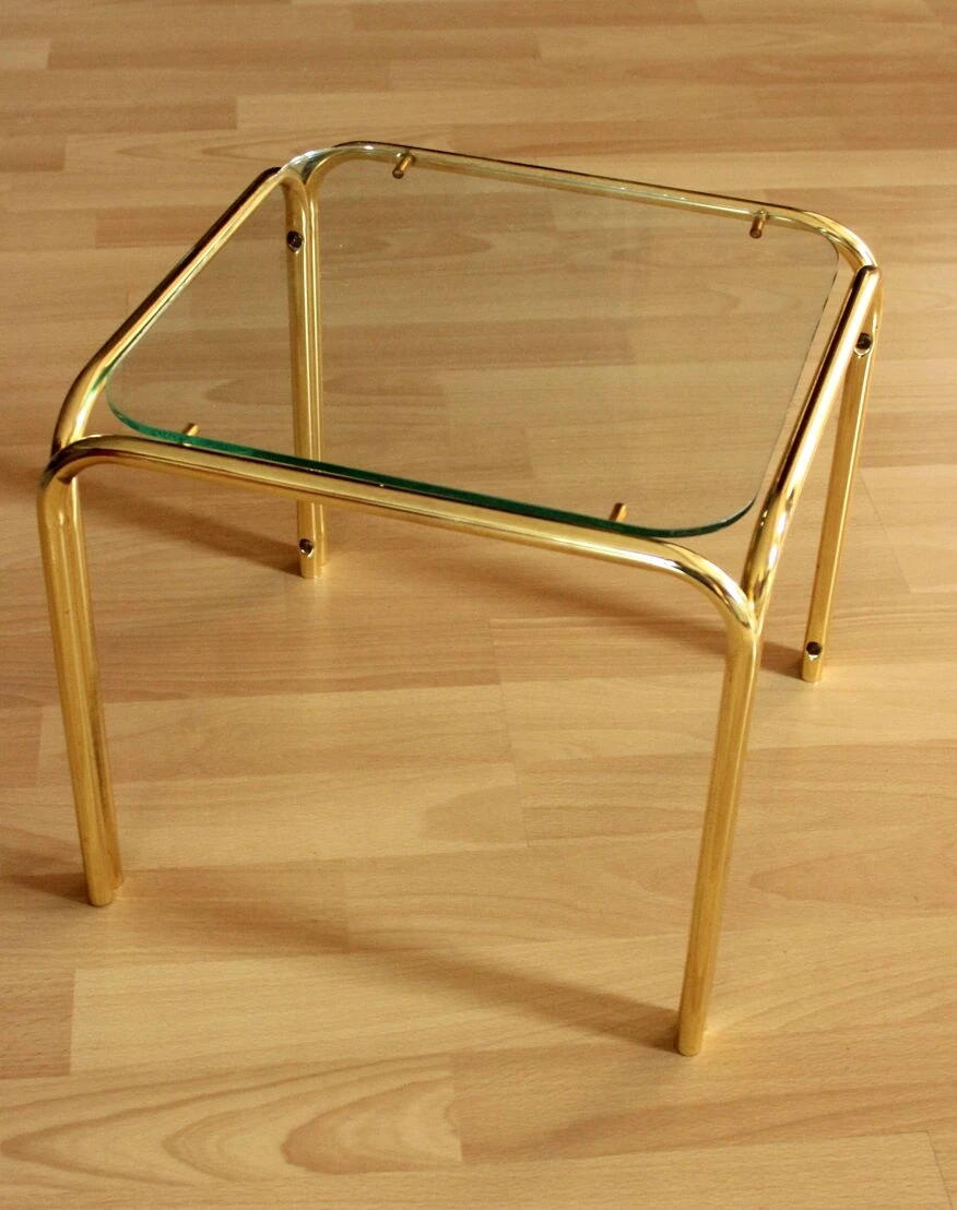 Small brass and glass side table, ideal as a plant stand, in good vintage condition with minimal traces of age and use.