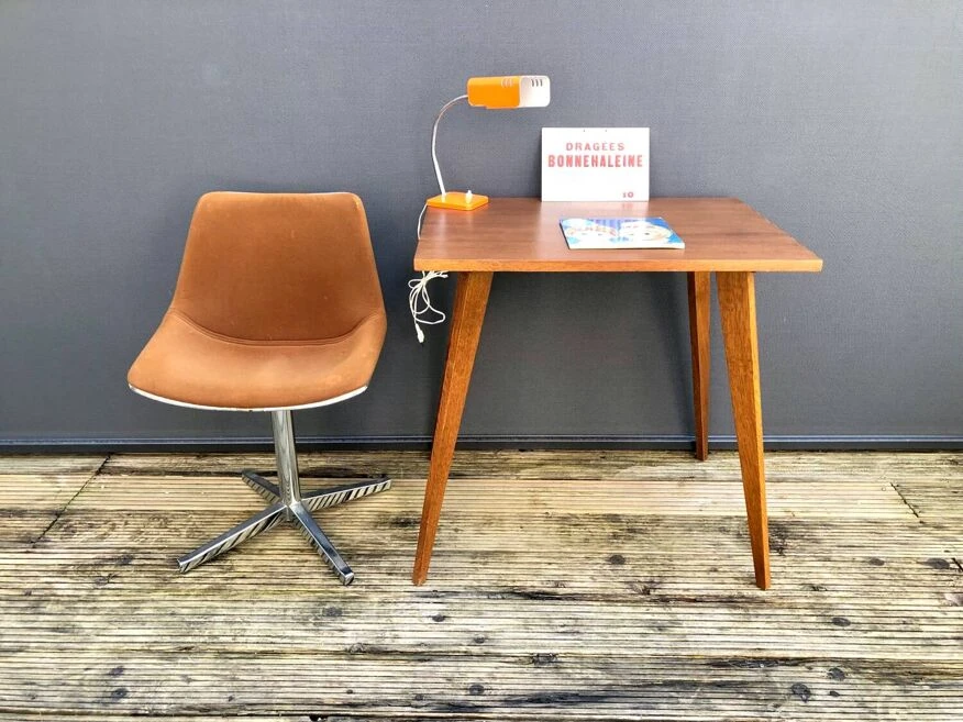 Small wooden table compass legs can be used as a small side desk dimensions 50×70 height 69 cm.