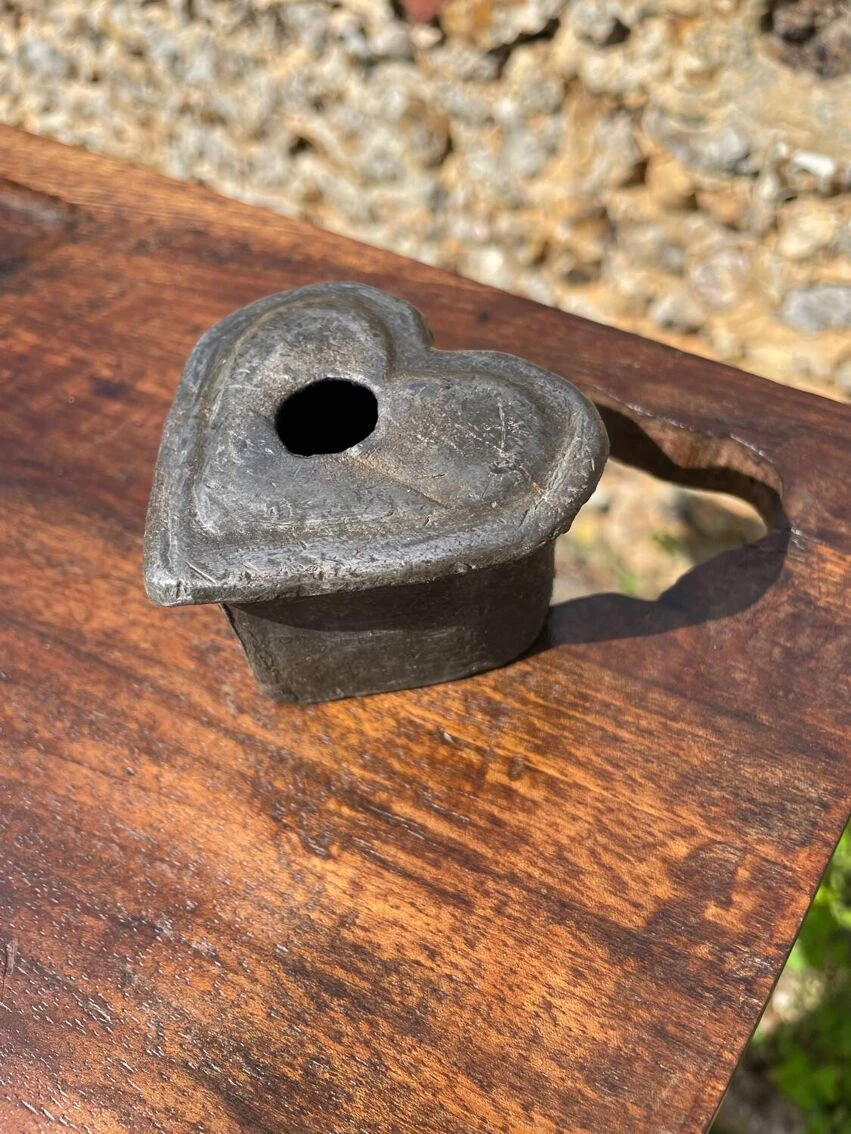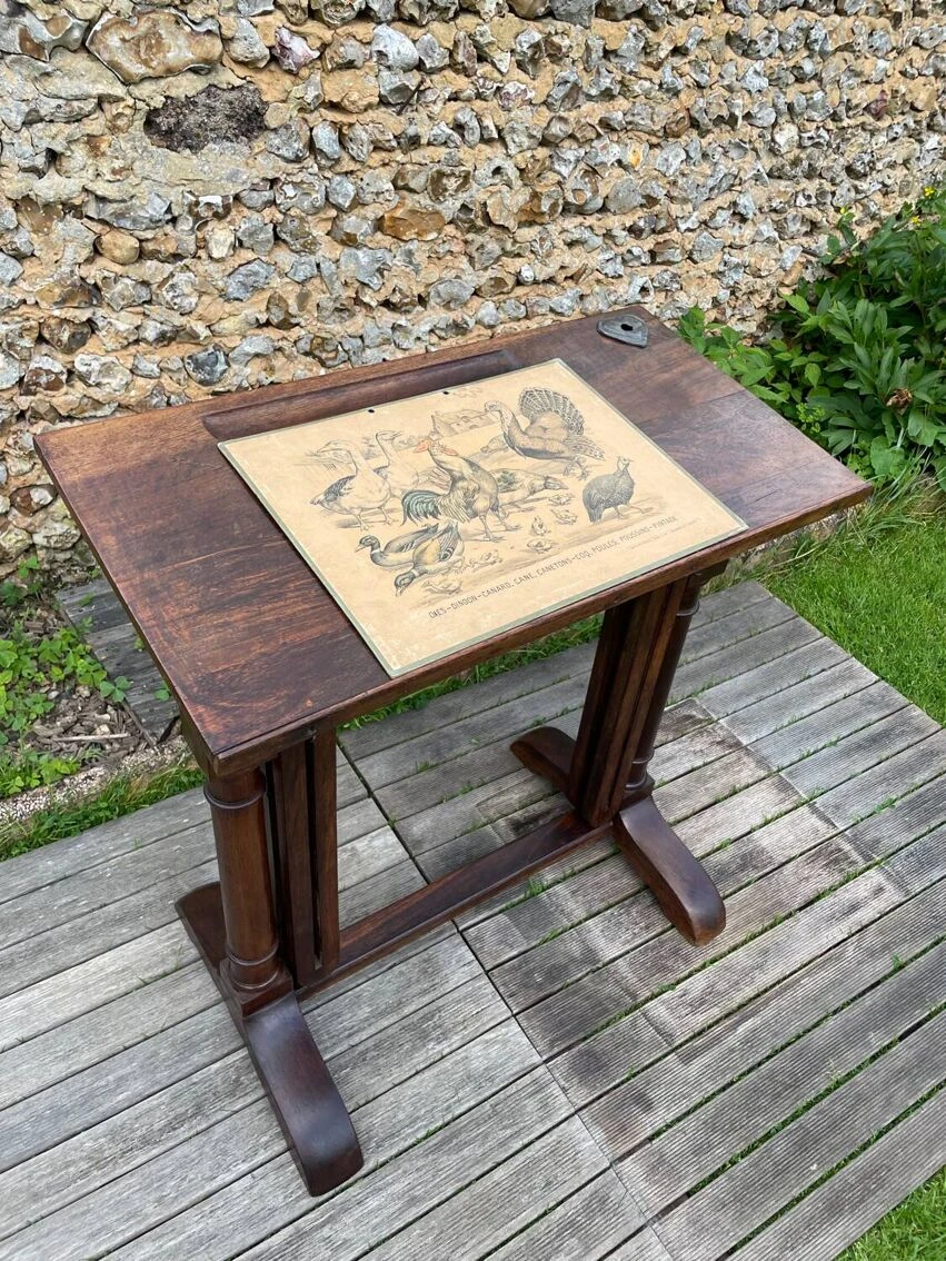 Pretty little atypical drawing table with its lead heart inkwell and its fixed top with a slight inclination.