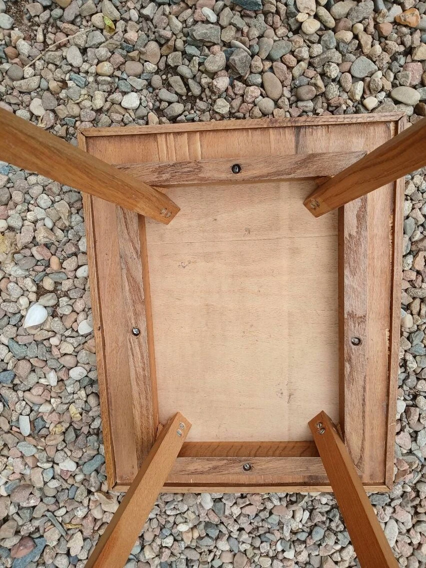 Small vintage coffee table, in wood, with 4 compa legs the top measures 50 × 40 cm height of the table 43 cm weight 4 kg 300 can be used as a side table, plant holder…