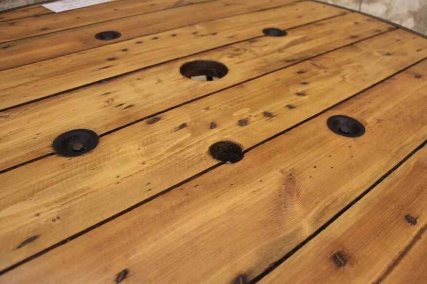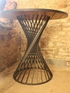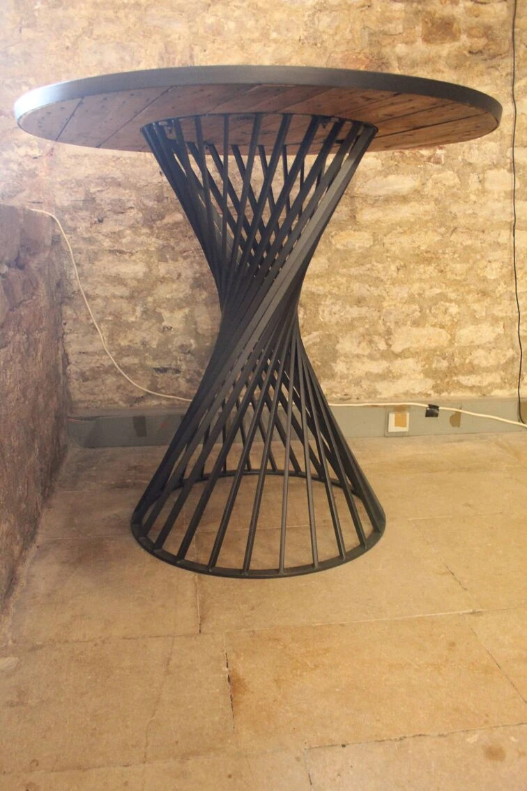 The upper board is made of wood. 110 cm high 119 cm diameter.