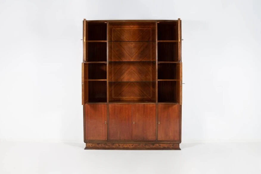 Equipped with 8 doors where behind them shelves, 3 glass shelves in the center.