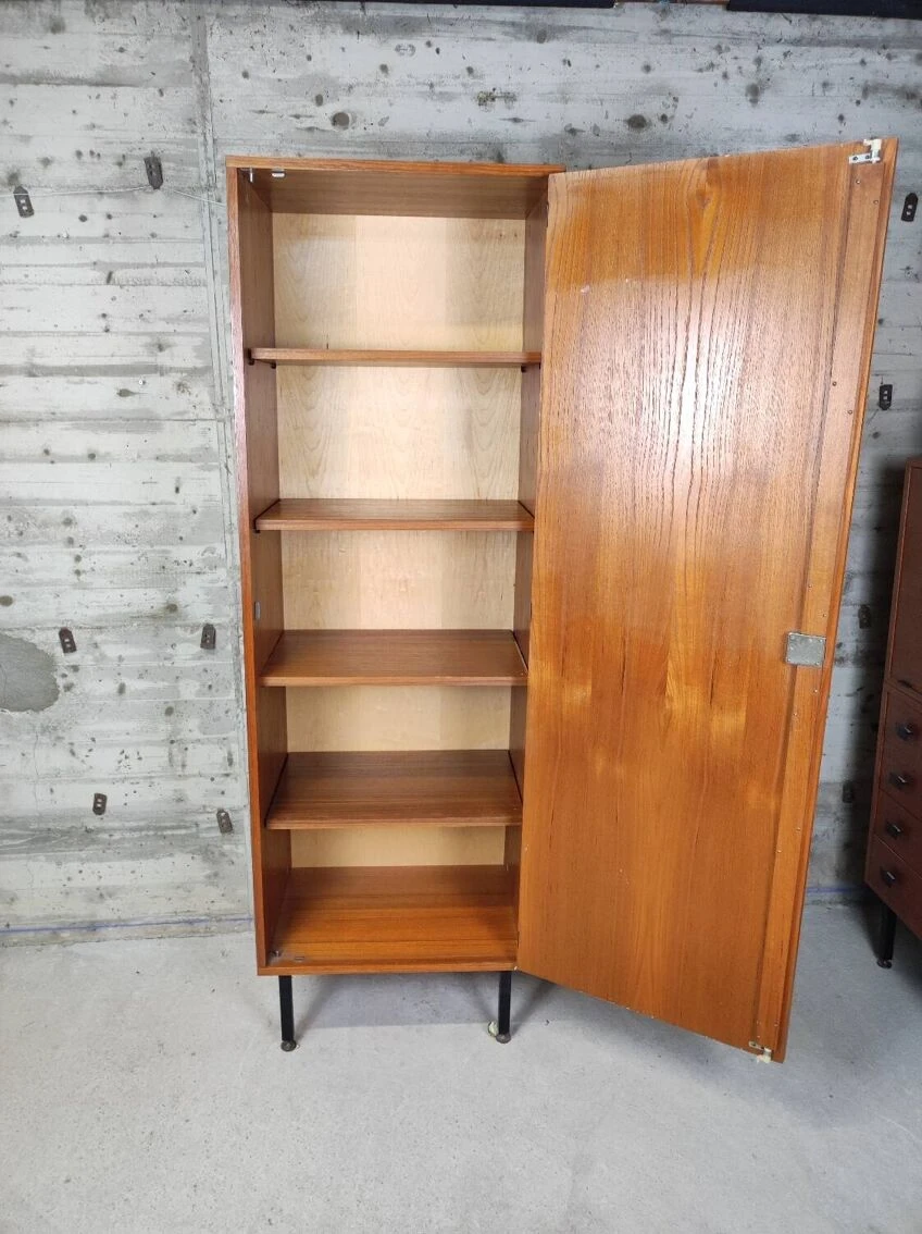 Vintage wooden cabinet, cupboard or hosiery, black metal legs.