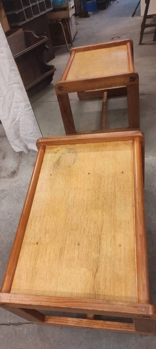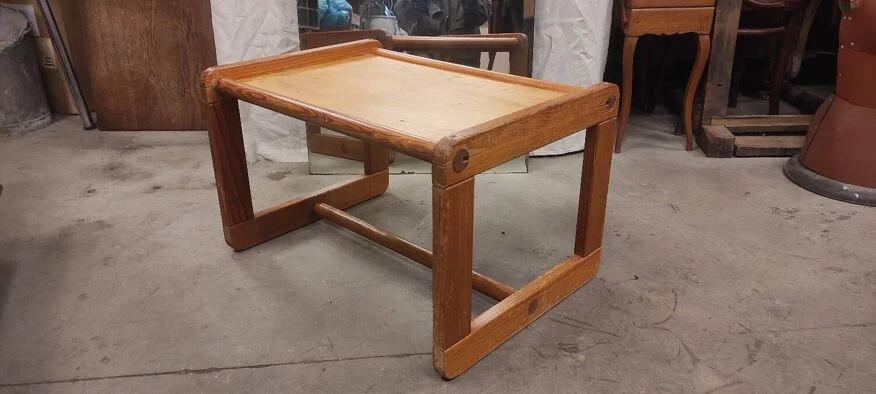 Pretty coffee table with a vintage design from the 70s which can be used as a child’s desk. On the tray there remain traces of water (see photos) Height 43.5 cm, length 70 cm, width 50 cm.