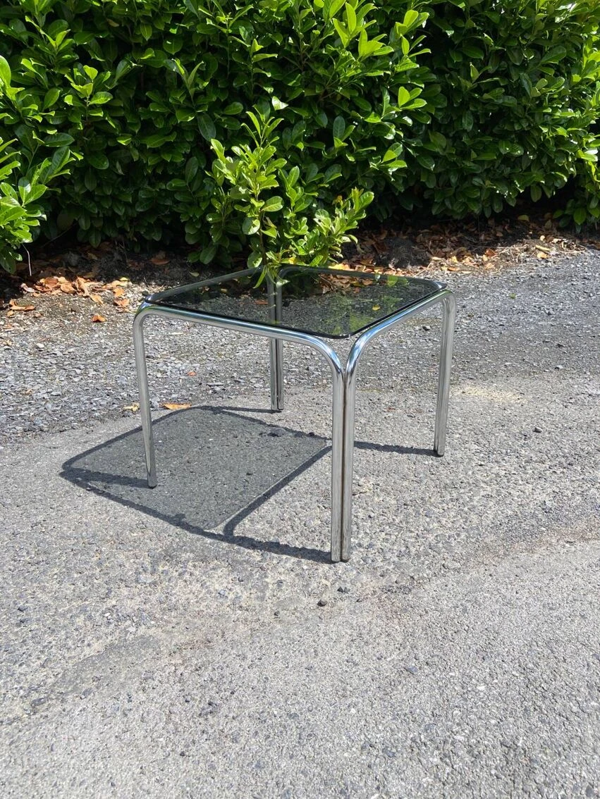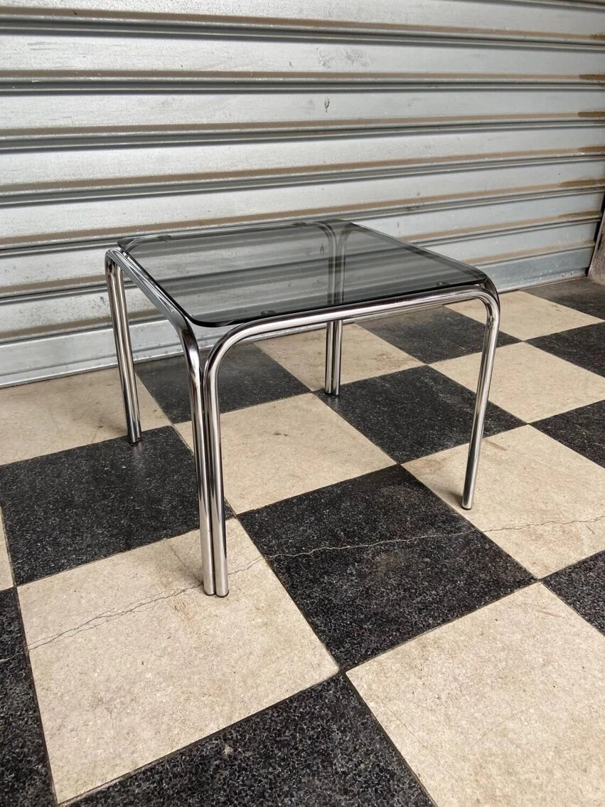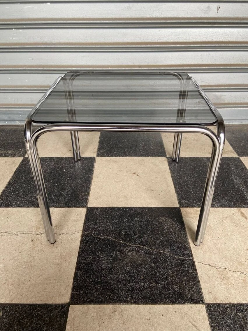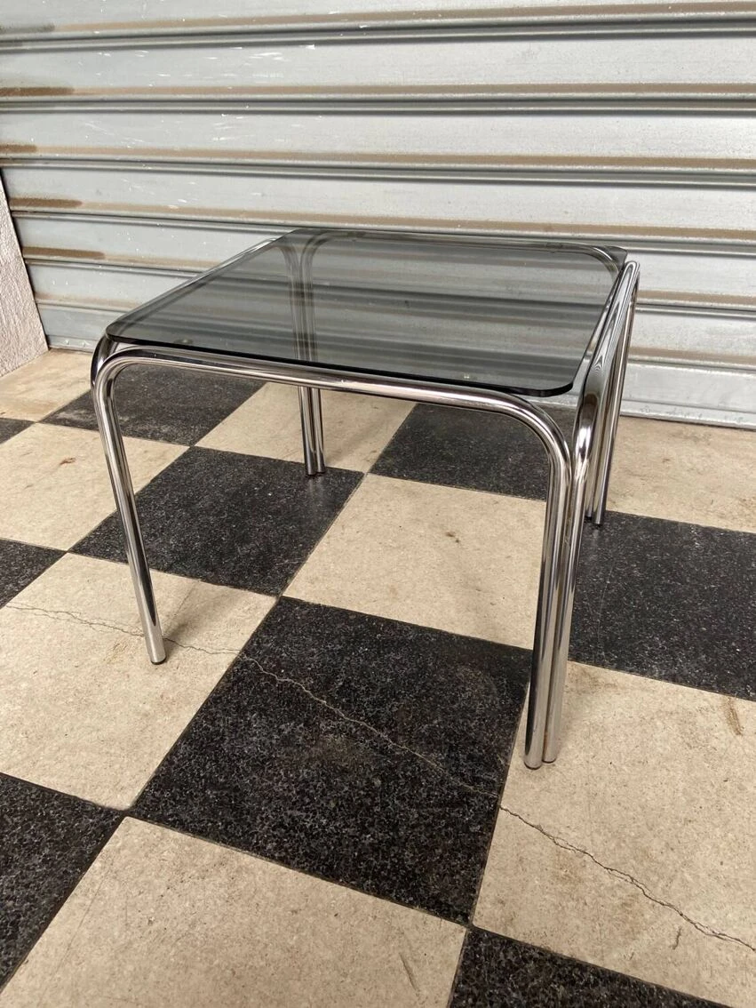 Vintage side table, chrome structure and smoked glass top, good general condition, note the presence of a few shallow but visible scratches (2 or 3), see photos.