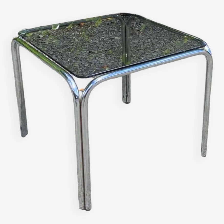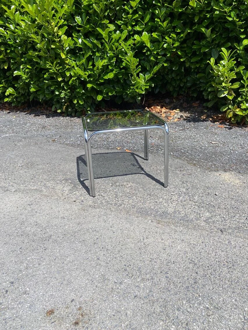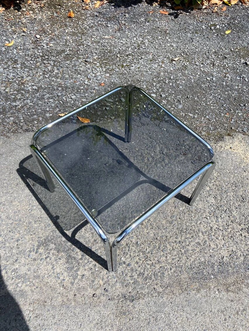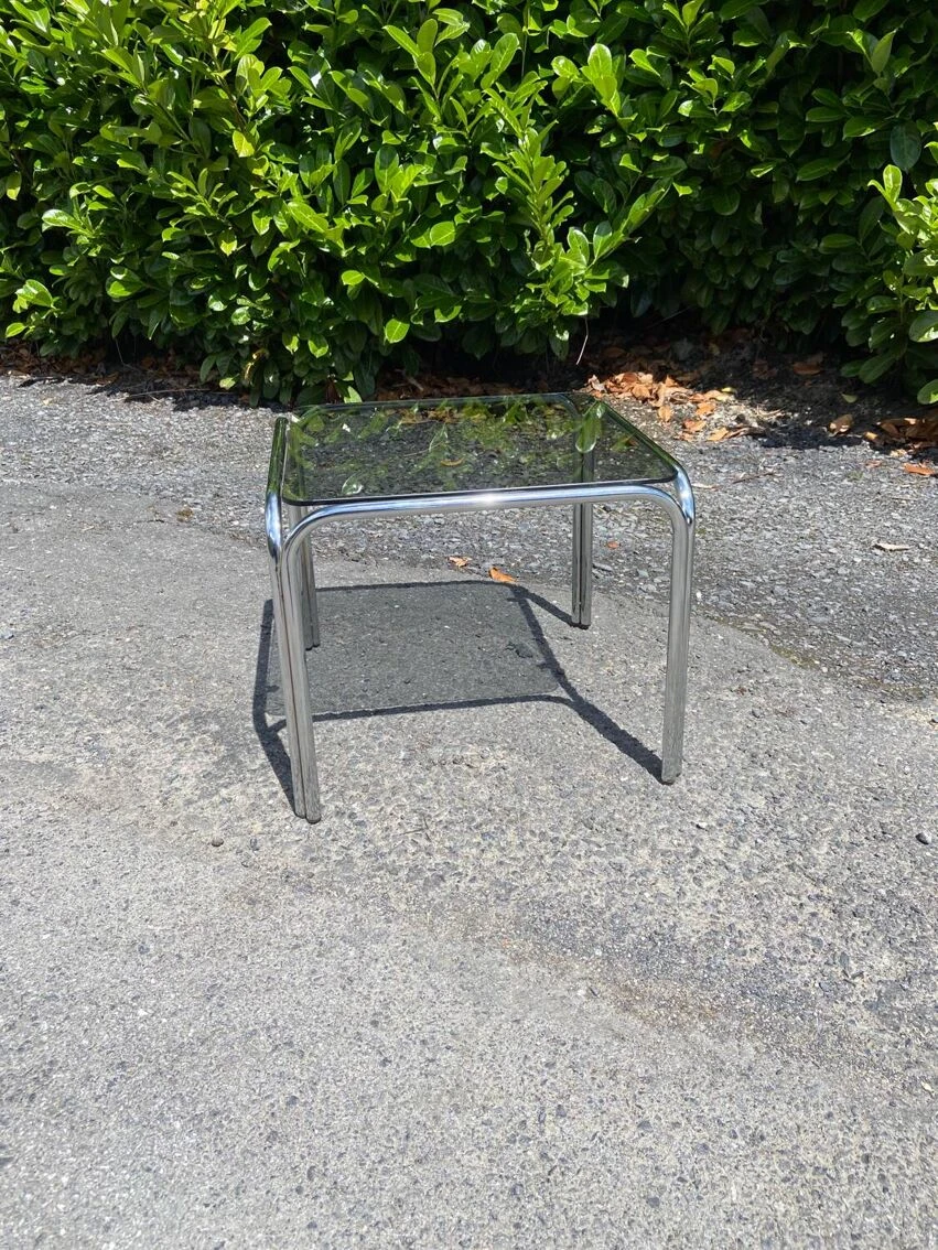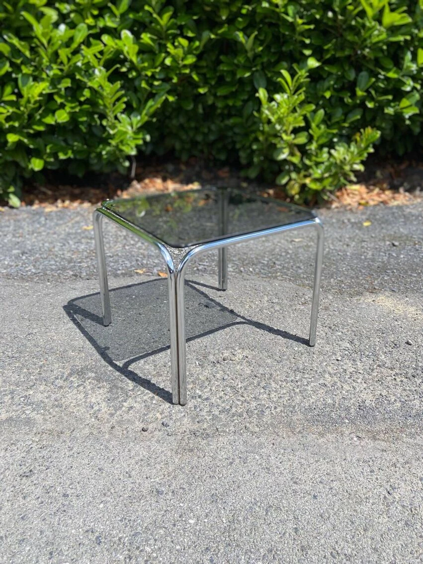 Vintage side table, chrome structure and smoked glass top, good general condition, note the presence of a few shallow but visible scratches (2 or 3), see photos.