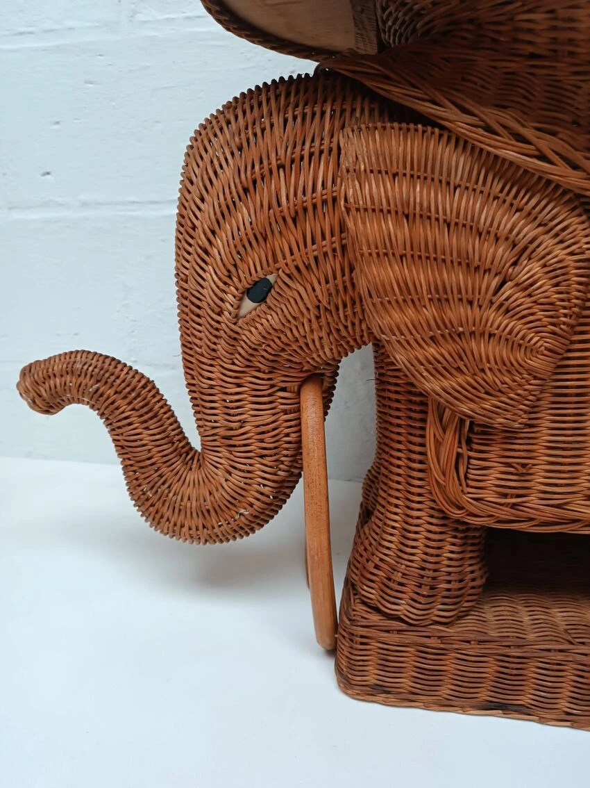 Elephant coffee table in natural wicker and rattan from the 70s.