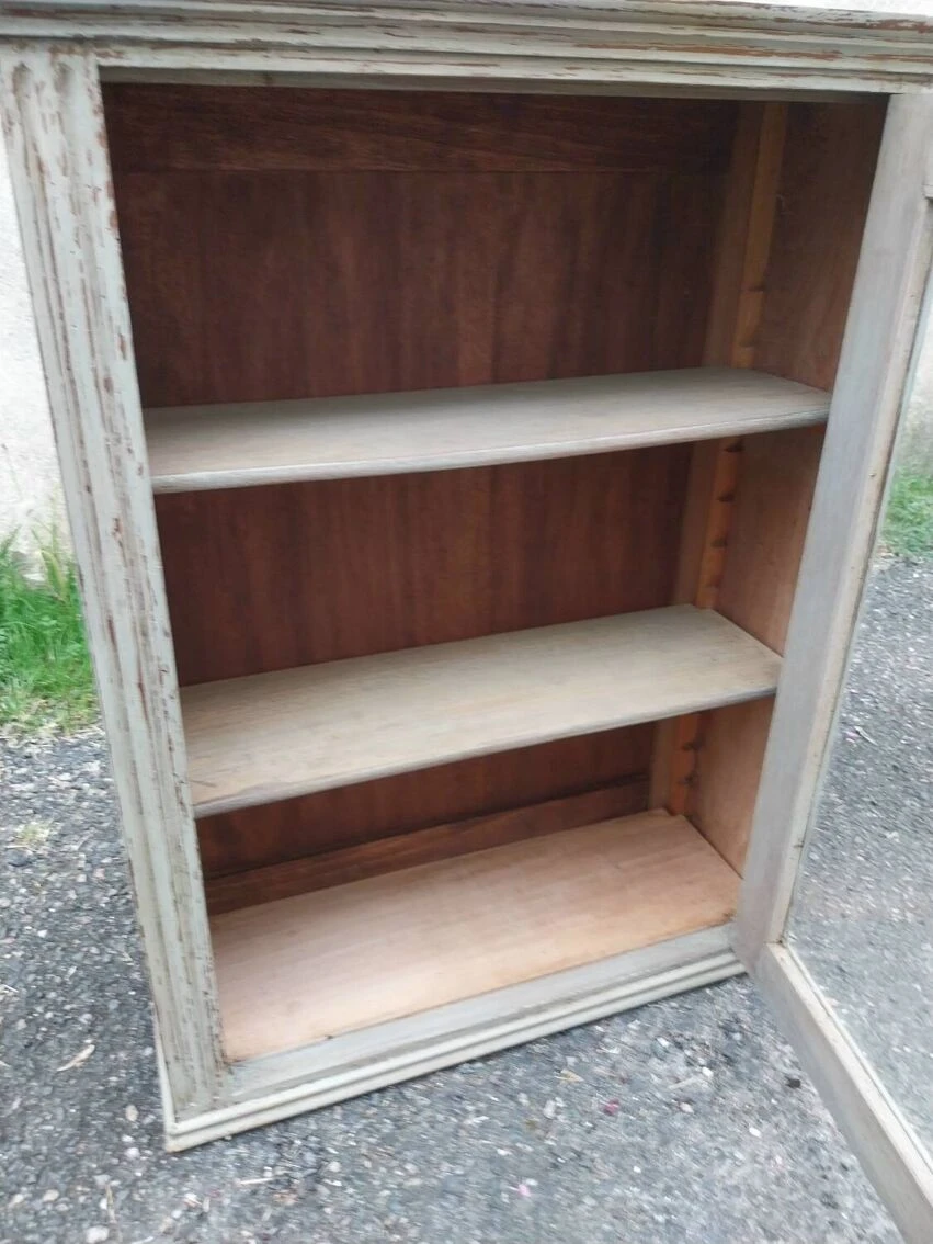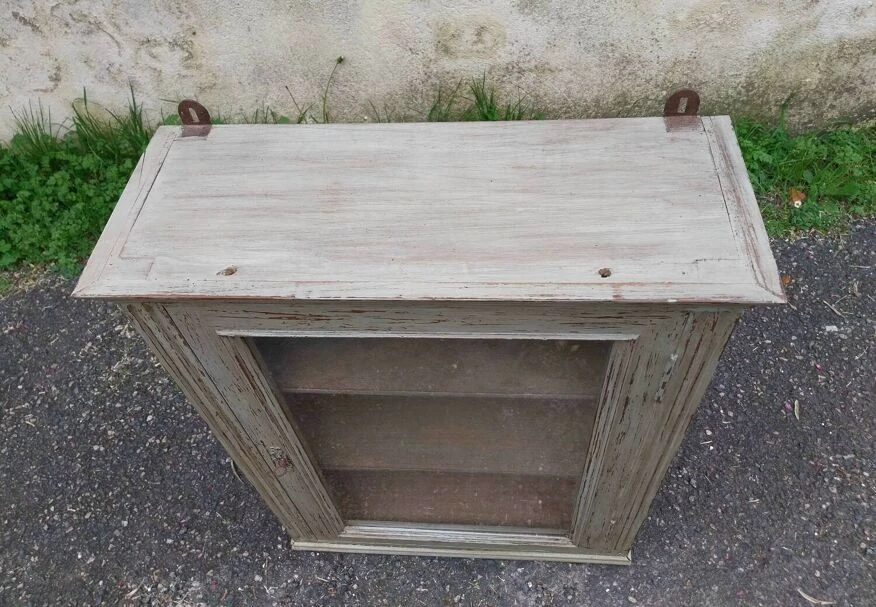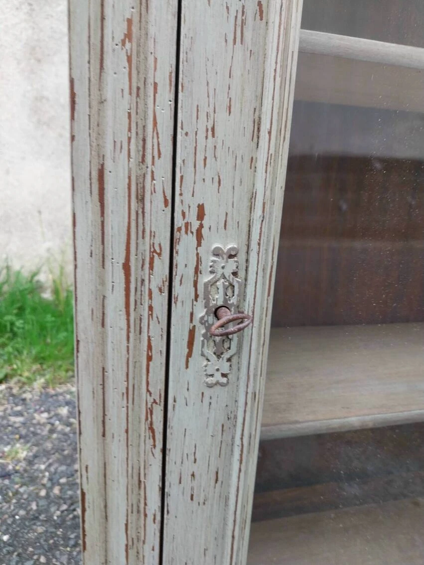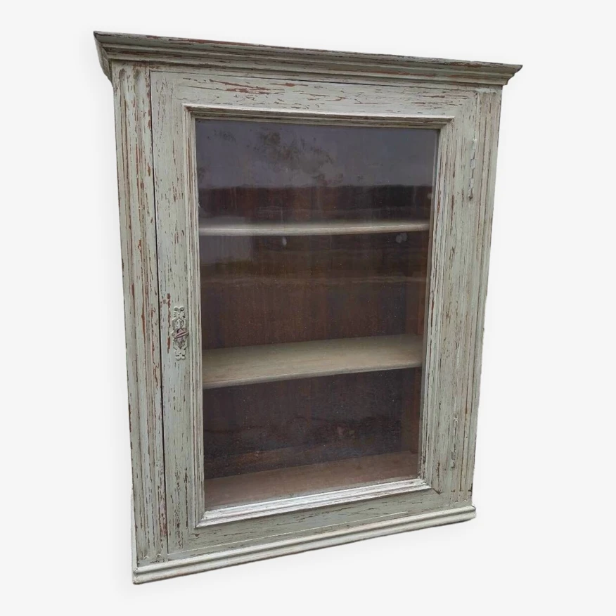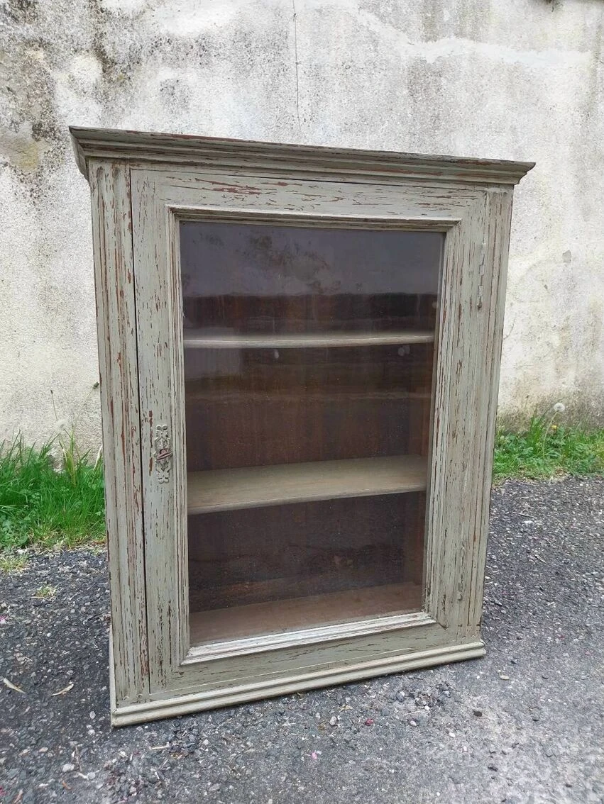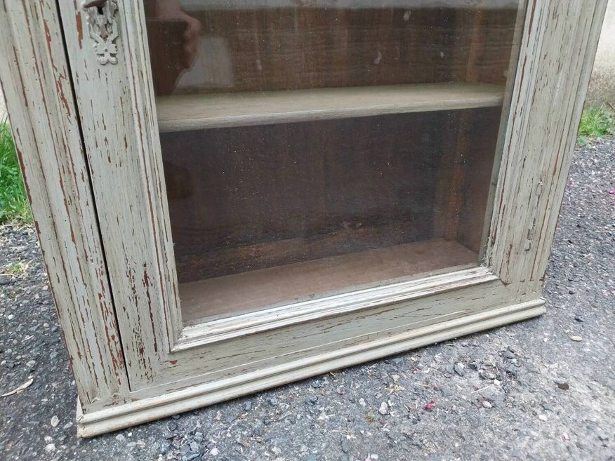 Vintage Display Cabinet Sublimated In Verdigris, 2 Doors With Beveled And Cut Windows, Wooden Top.