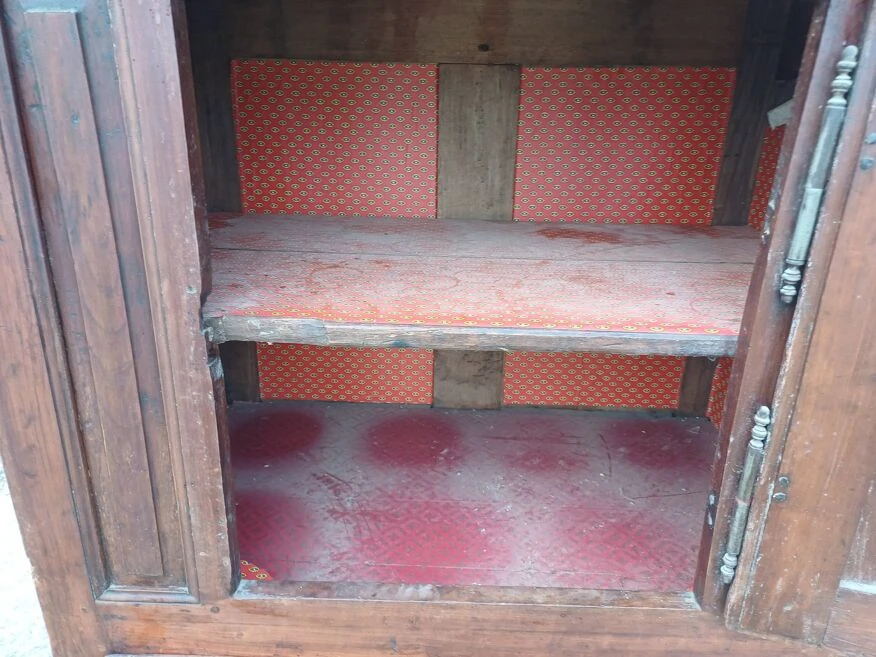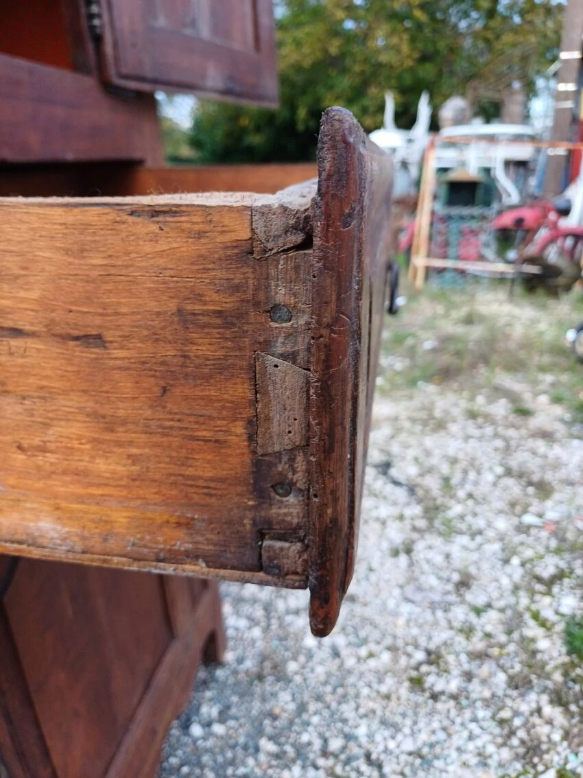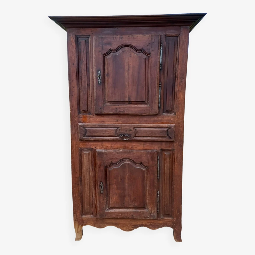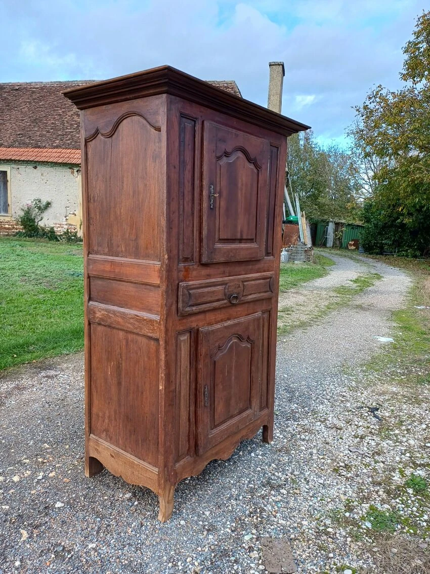 19th century walnut bonnetière, 2 doors, shelves, 1 drawer, key and locks, height: 201 cm, length and width: 102 cm by 64 cm, interior depth: 54 cm, very good condition.