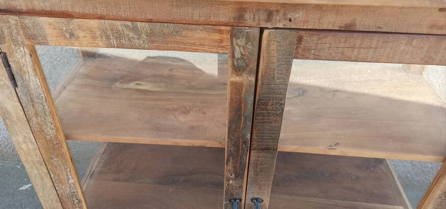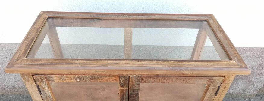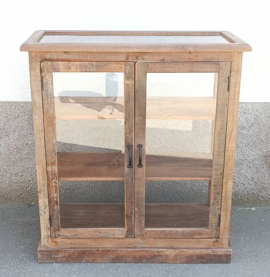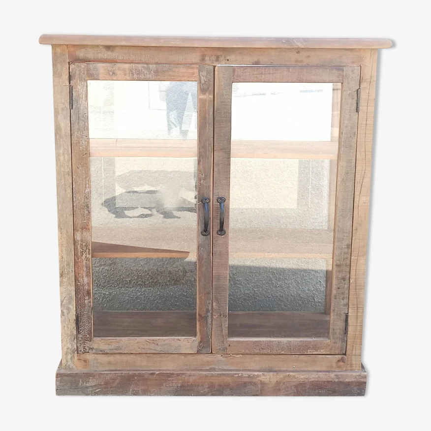 Vintage Display Cabinet Sublimated In Verdigris, 2 Doors With Beveled And Cut Windows, Wooden Top.
