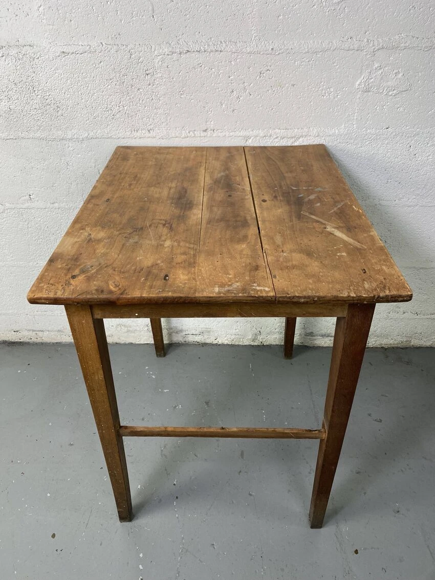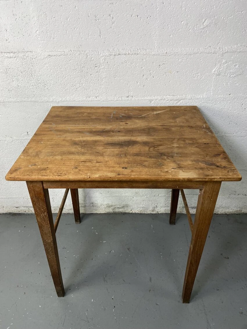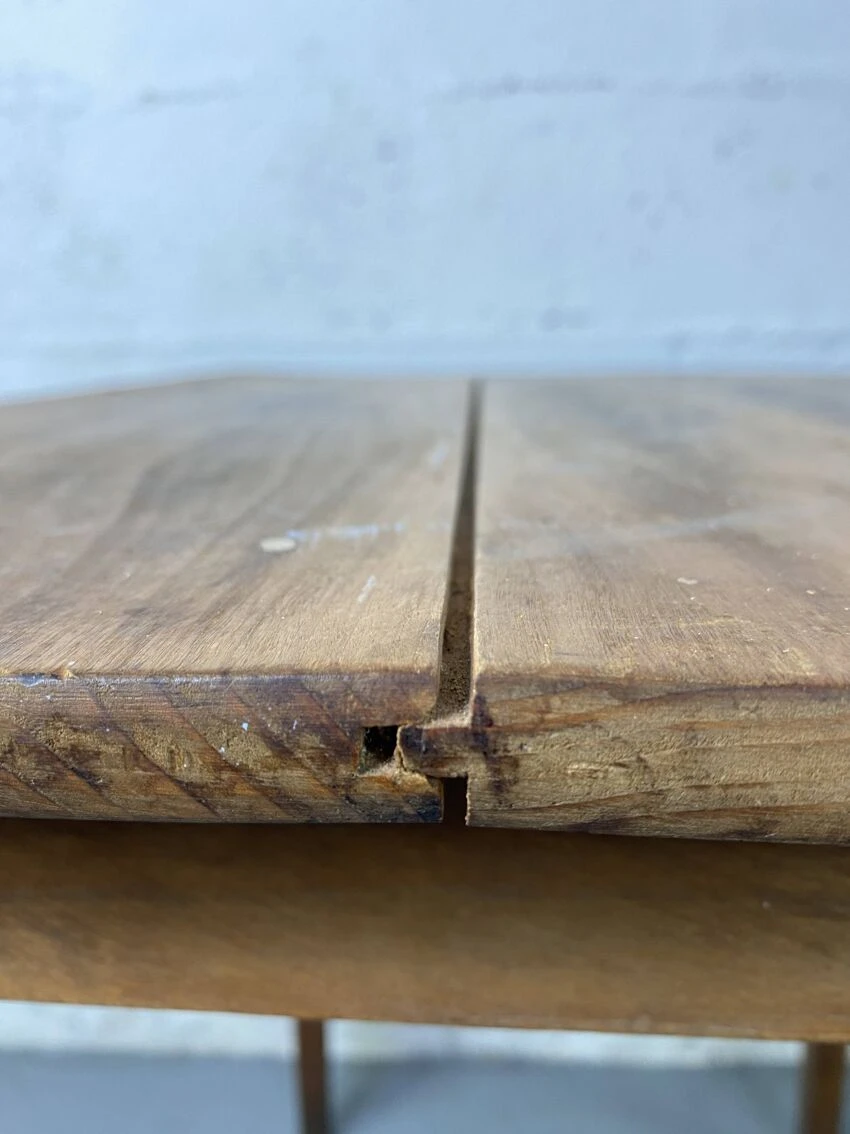 Despite some imperfections such as large cracks, wormholes and nails sticking out between the legs, this table remains perfectly functional and stable.