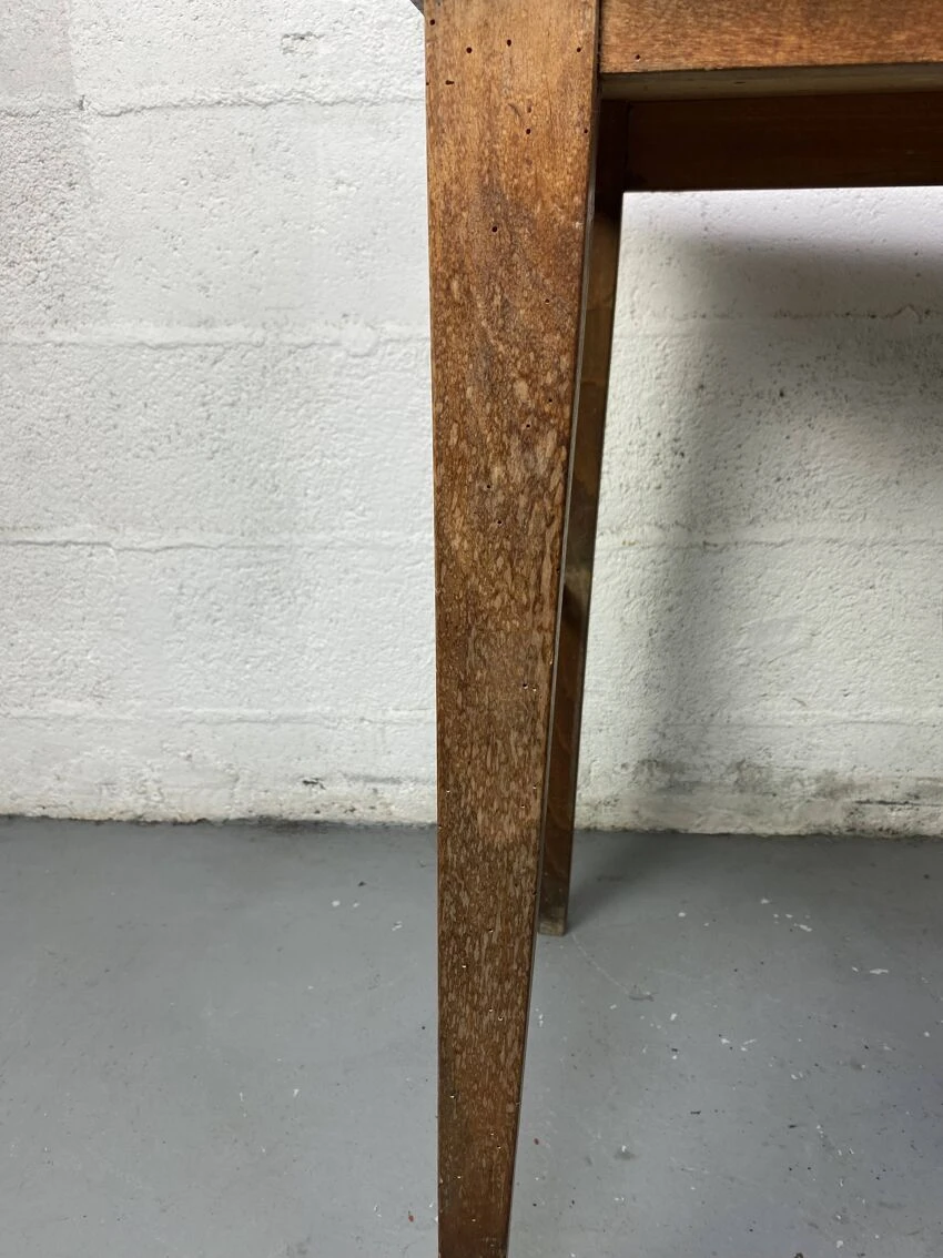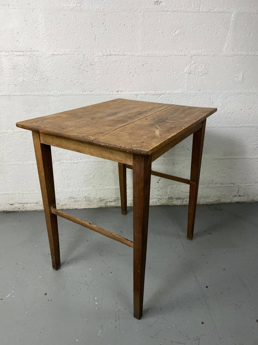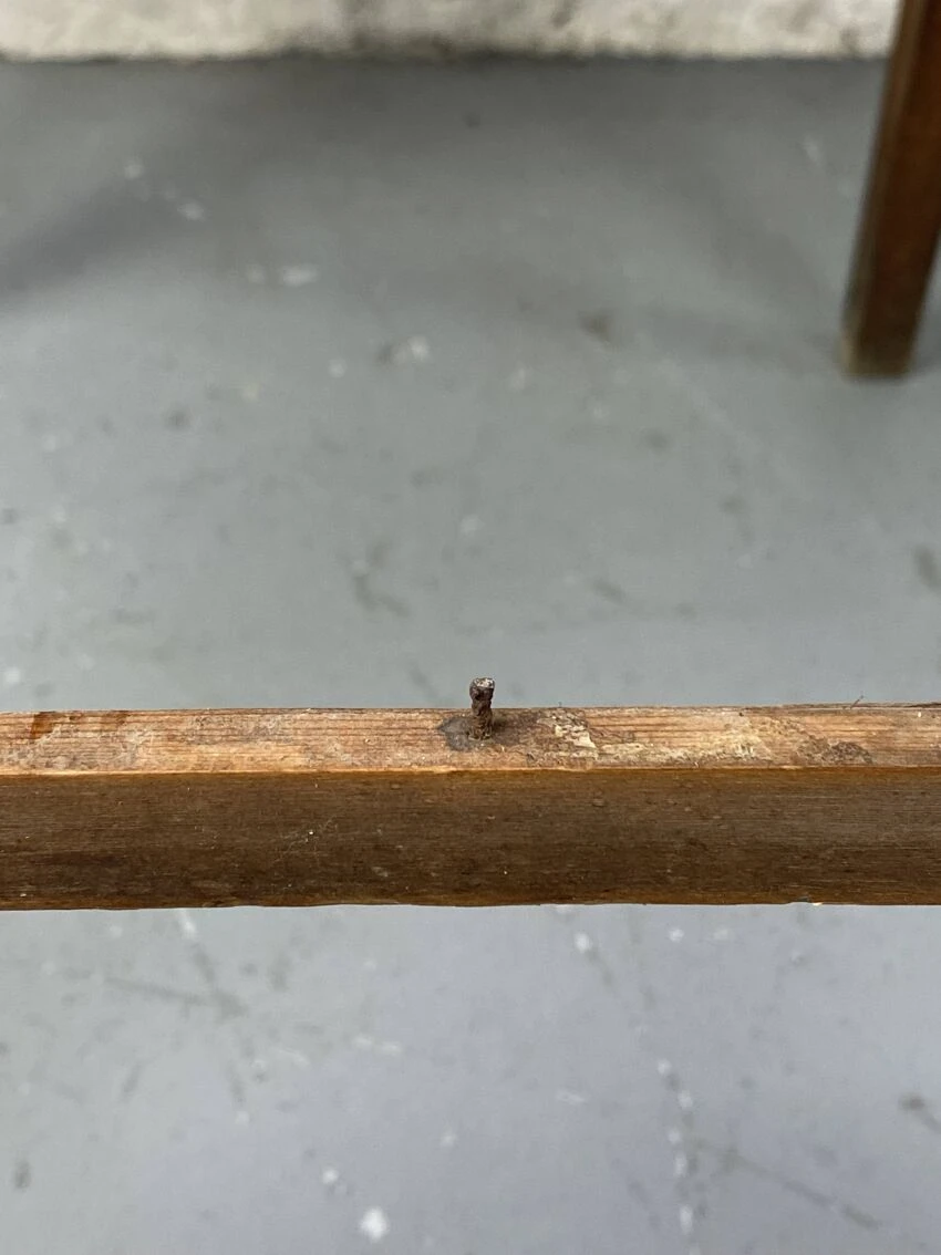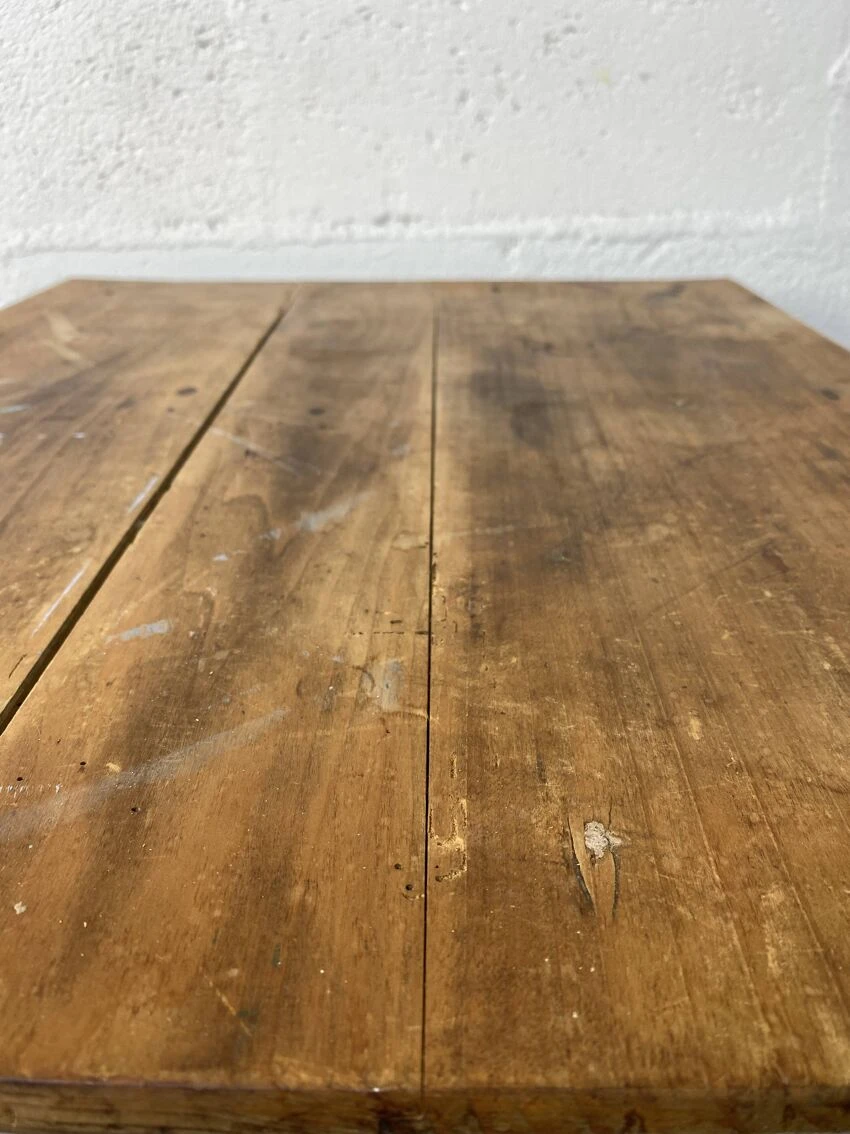 Despite some imperfections such as large cracks, wormholes and nails sticking out between the legs, this table remains perfectly functional and stable.